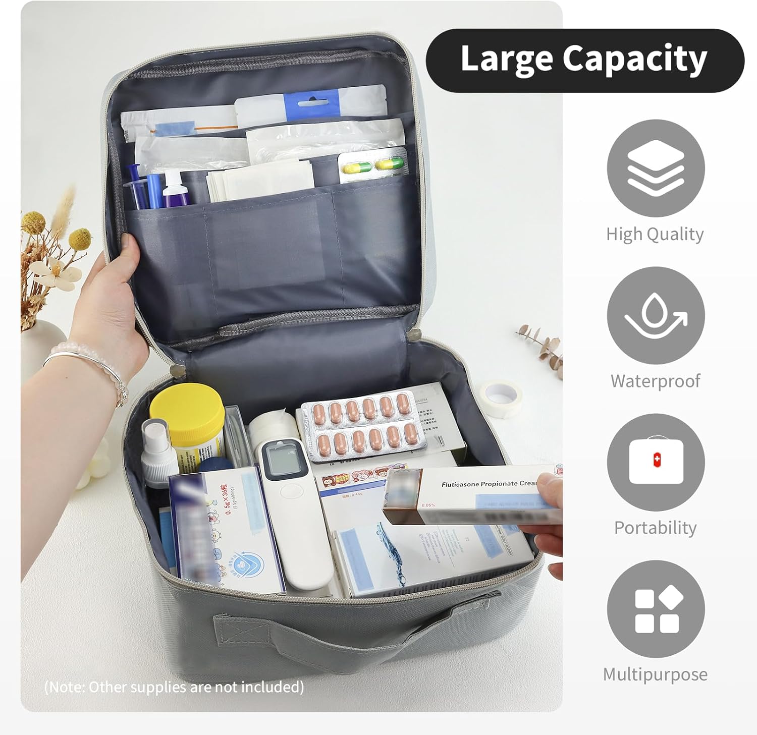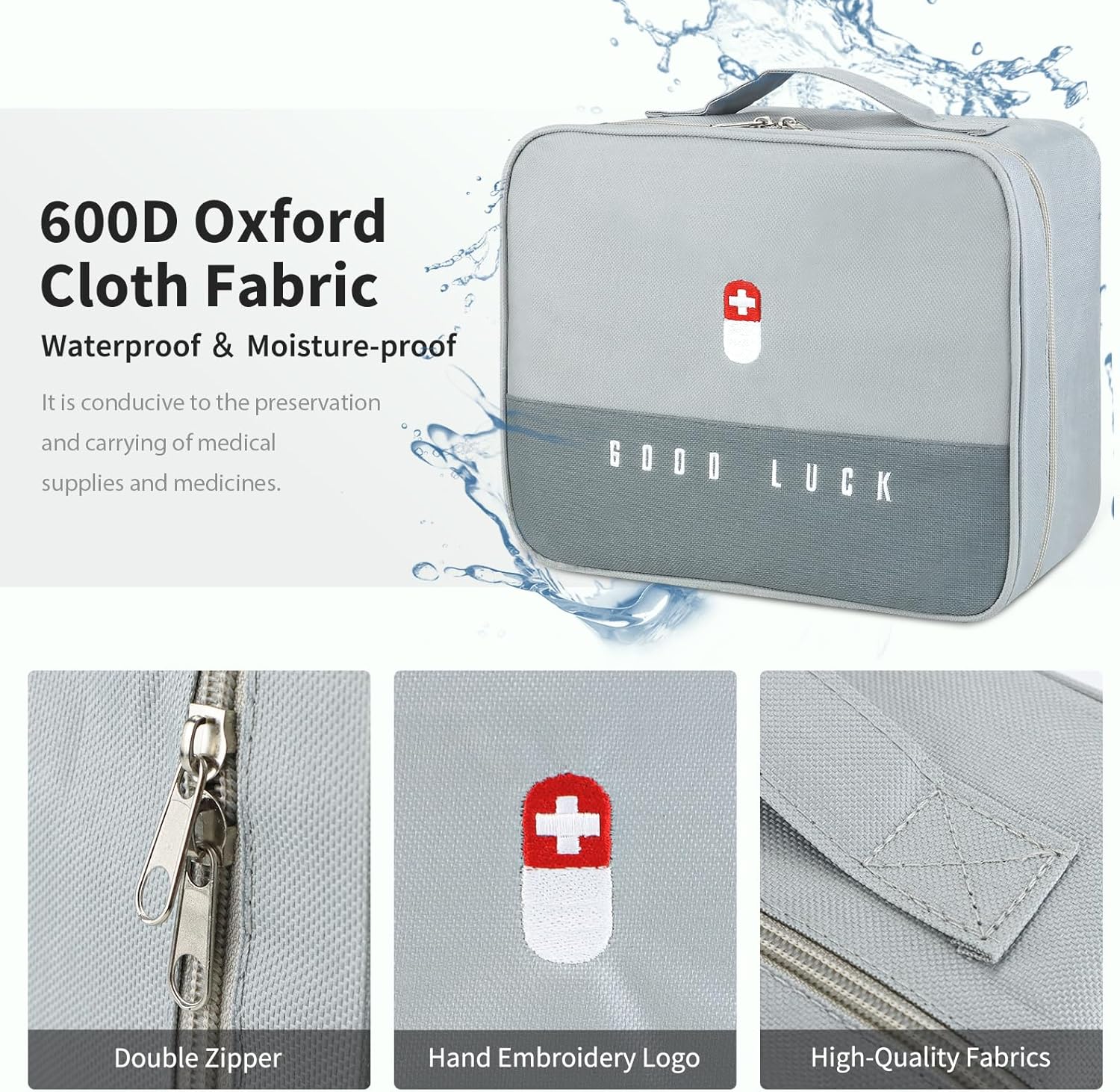 【 High Quality Material】: Made of 600D Oxford cloth fabric, the first aid bag has waterproof and moisture-proof functions, which is conducive to the preservation and carrying of medical supplies and medicines.