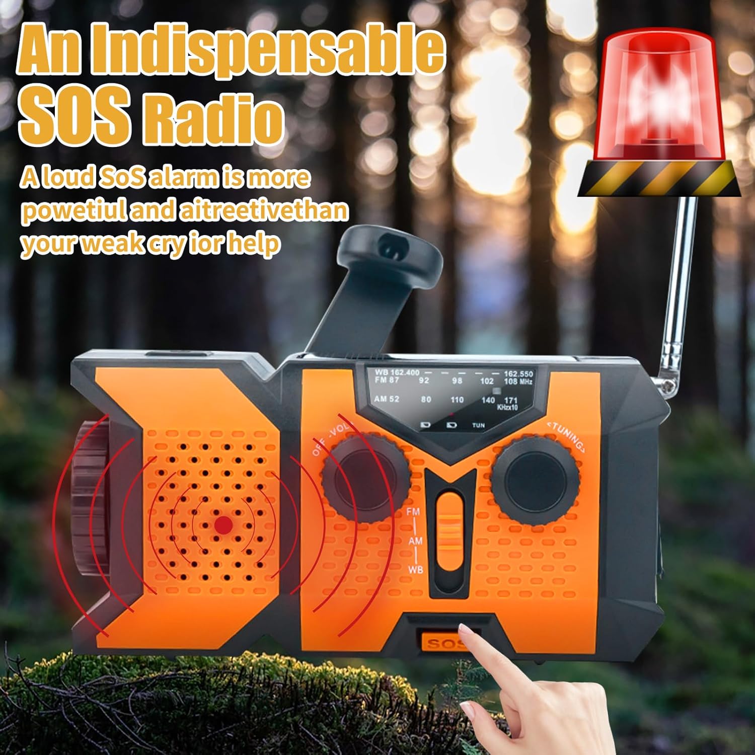【3-Way Charging Never Fails – Solar + Hand Crank + USB = Uninterrupted Power Anywhere】 Recharge via solar (6hrs sunlight = 18hrs runtime), ultra-efficient hand crank (30s cranking = 10min radio use), or USB. Lab-tested dynamo system delivers 40% longer runtime than standard emergency radios in low-light conditions, ensuring you stay connected during blackouts, wilderness trips, or nighttime emergencies.