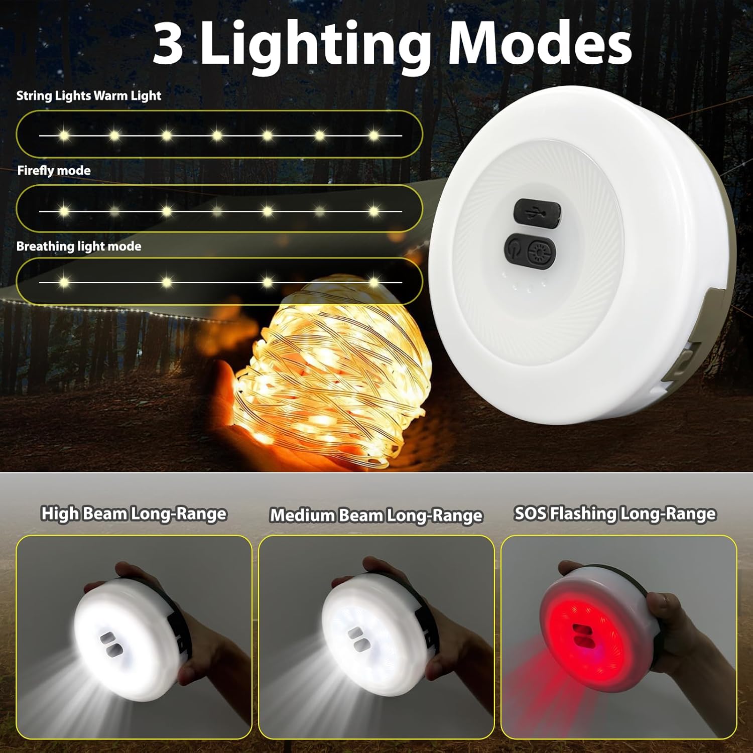 【 Smart Lighting System】Tangle-Free 10M LED String Lights, Hand-cranked reel transforms IP67 waterproof lights into instant campsite lantern (200 lumens warm glow). No tangles, no fuss – just smooth retraction