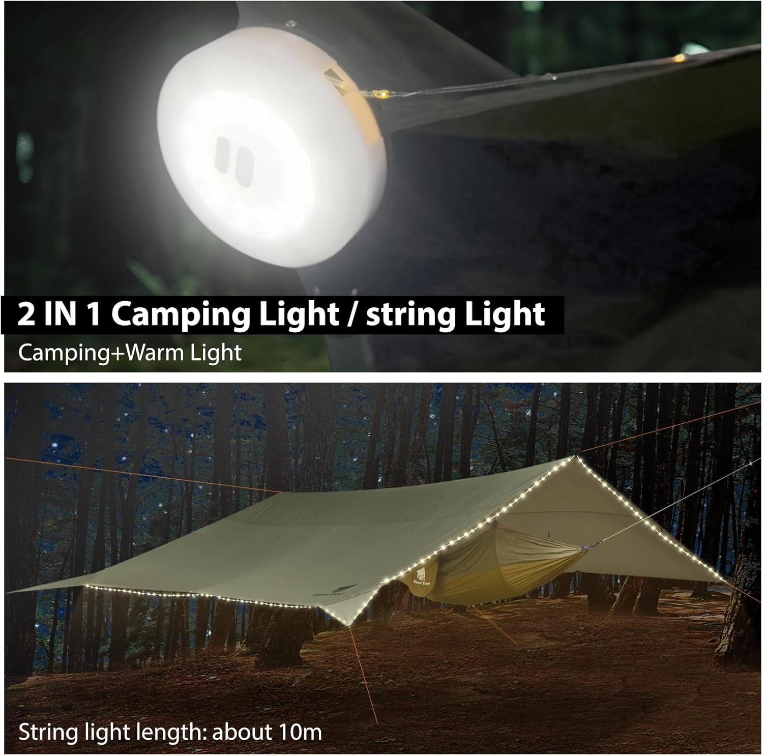 Camping Tarp with Portable Waterproof Outdoor Light String 33 ft, Easy to Carry