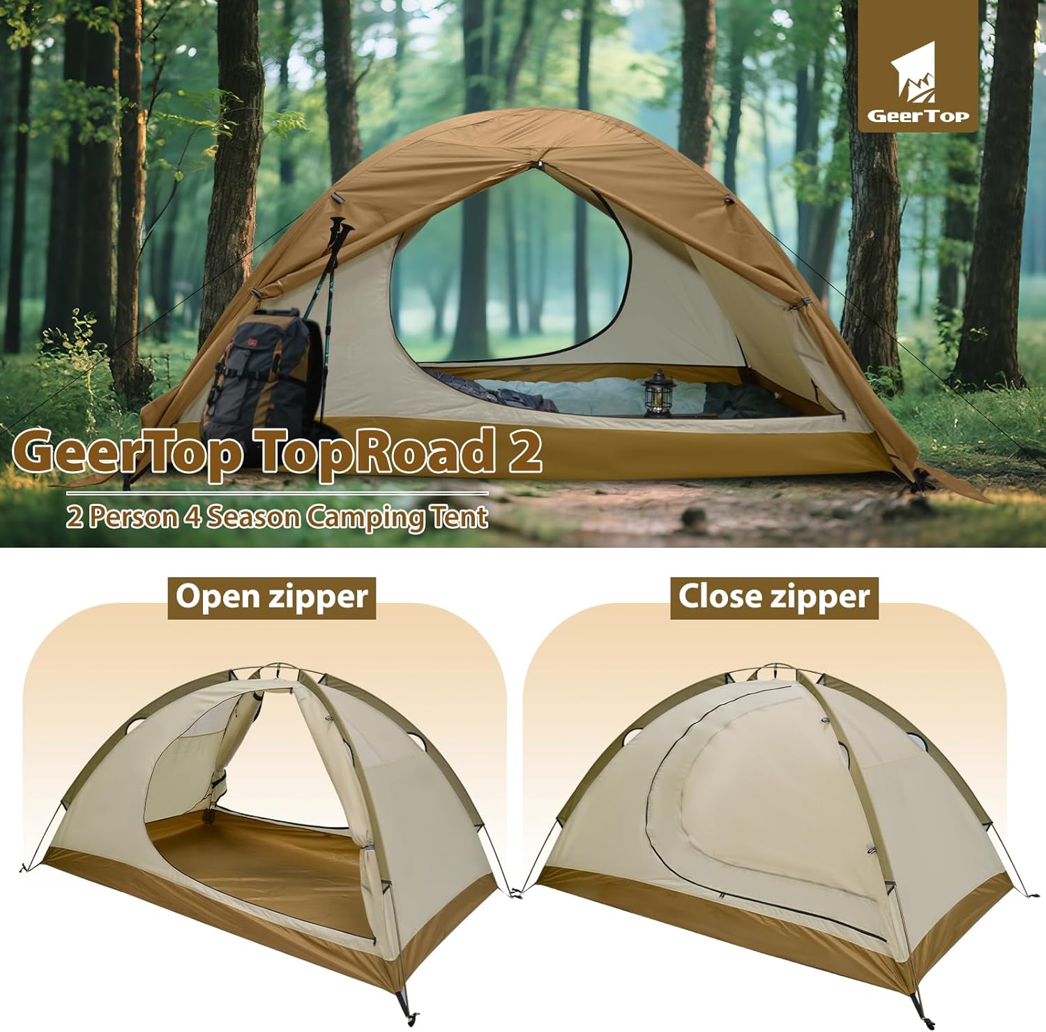 4 SEASON BACKPACKING TENT: This all-season backpacking tent offers four-season protection, featuring a complete snow skirt design and exceptional PU 3000mm waterproof rating to keep you dry well to withstand heavy rain and snow