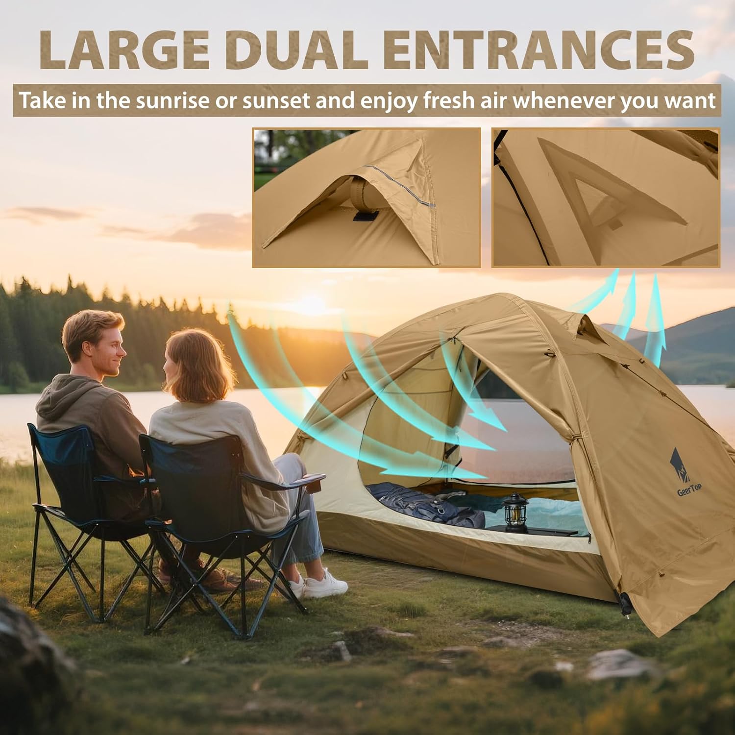 SPACIOUS FOR TWO: Generous 82.6″ x 55″ floor plan and 45″ peak height offer comfy room for two campers. Plus, dual 24″ vestibules create essential covered gear storage (keep packs dry & organized!)