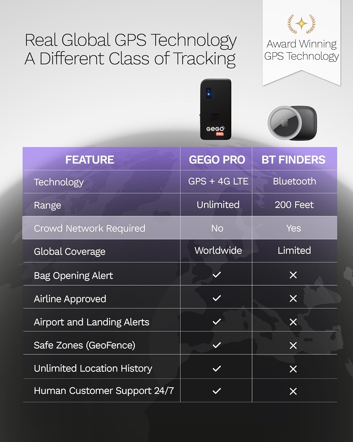 Trusted by Experts — Over a Decade of GPS Tracking Innovation. Built by the creators of LugLoc, GEGO PRO is backed by 10+ years of experience and winner of multiple industry awards, including the Travel Goods Association Innovation Award. Professionals and frequent flyers around the world trust it for its proven technology and reliability.