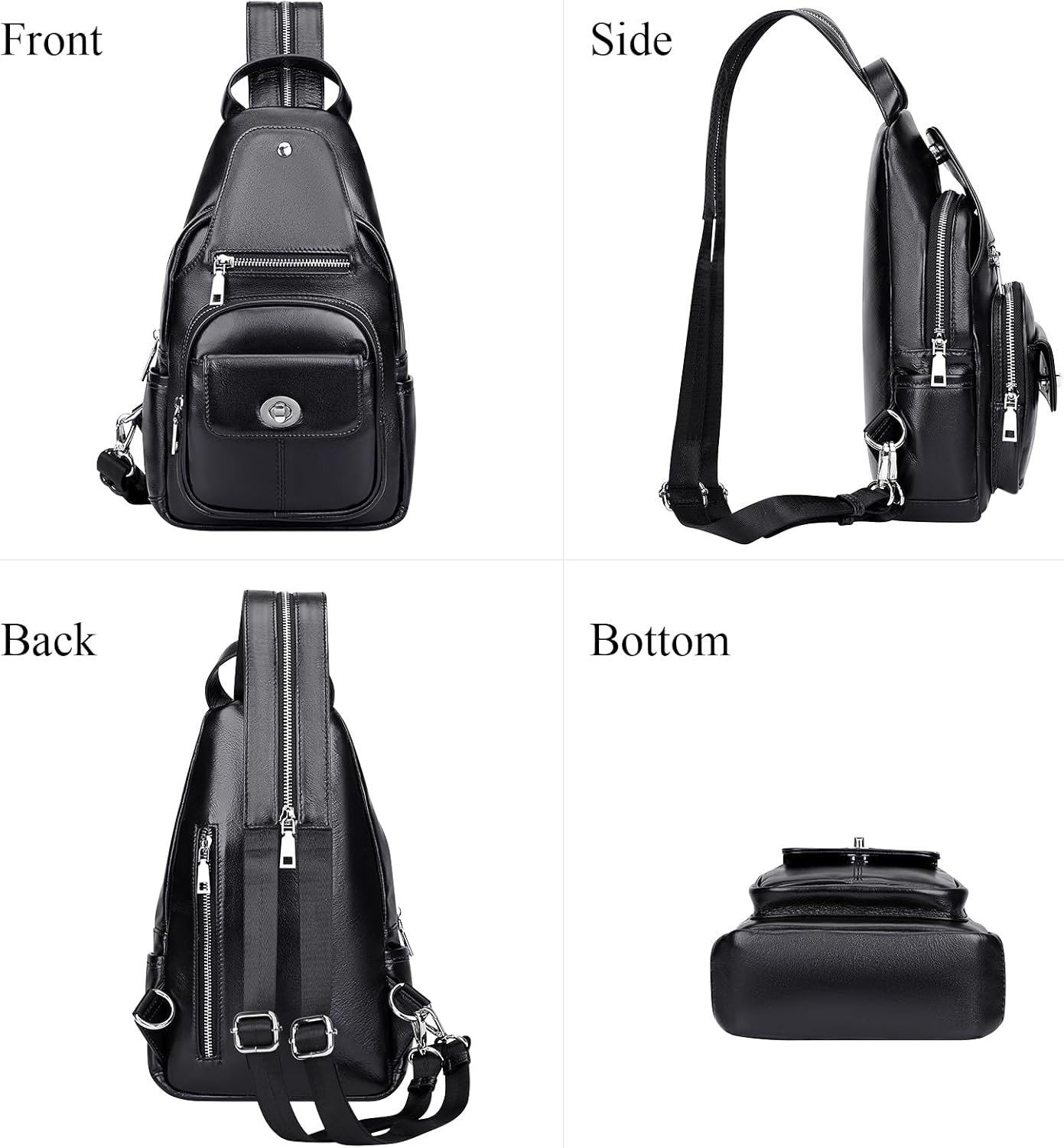 Genuine Leather: This sling backpack purse is crafted from first layer cowhide leather with soft and smooth texture. High quality silver color tone hardware and polyester lining, ensuring long lasting performance.