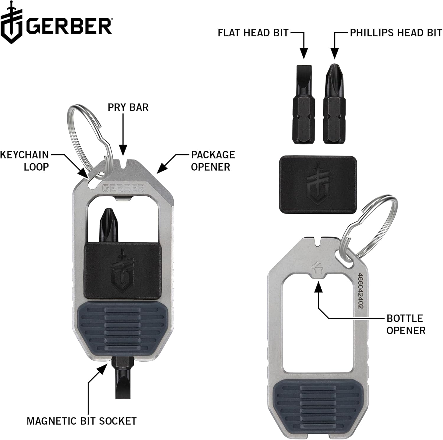Style and function combine in the Gerber Gear Driver compact 5-tool multi-tool keychain, designed to handle daily challenges with ease. It features a magnetic driver bit with ¼” flathead and Phillips bits for tightening or loosening screws efficiently. A sturdy prybar is ready for tough tasks, while the sharp package opener makes handling mail and deliveries effortless. The built-in bottle opener lets you celebrate your accomplishments at the end of the day. Its travel-friendly design ensures it’s always ready to go, making it the perfect companion for work, home, or on-the-go use. Compact, versatile, and reliable, this multi-tool keychain is built for convenience.