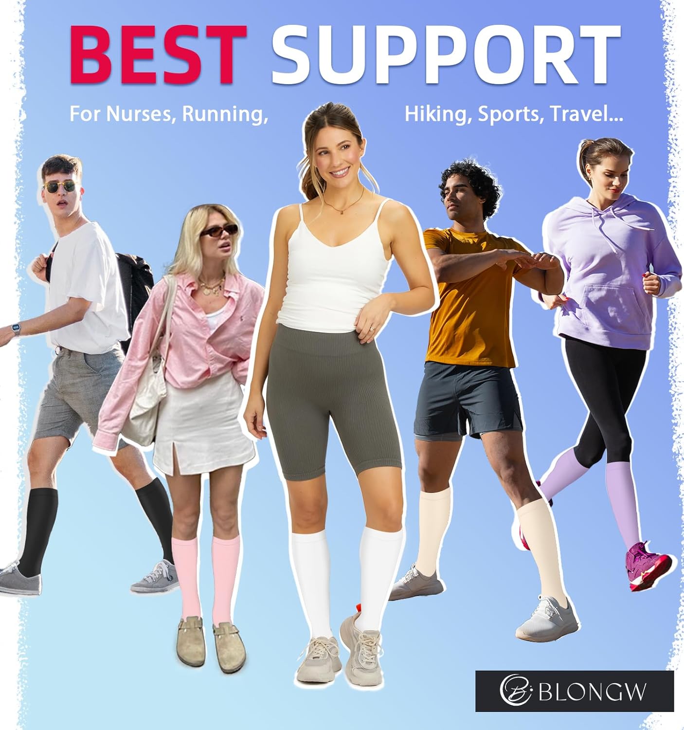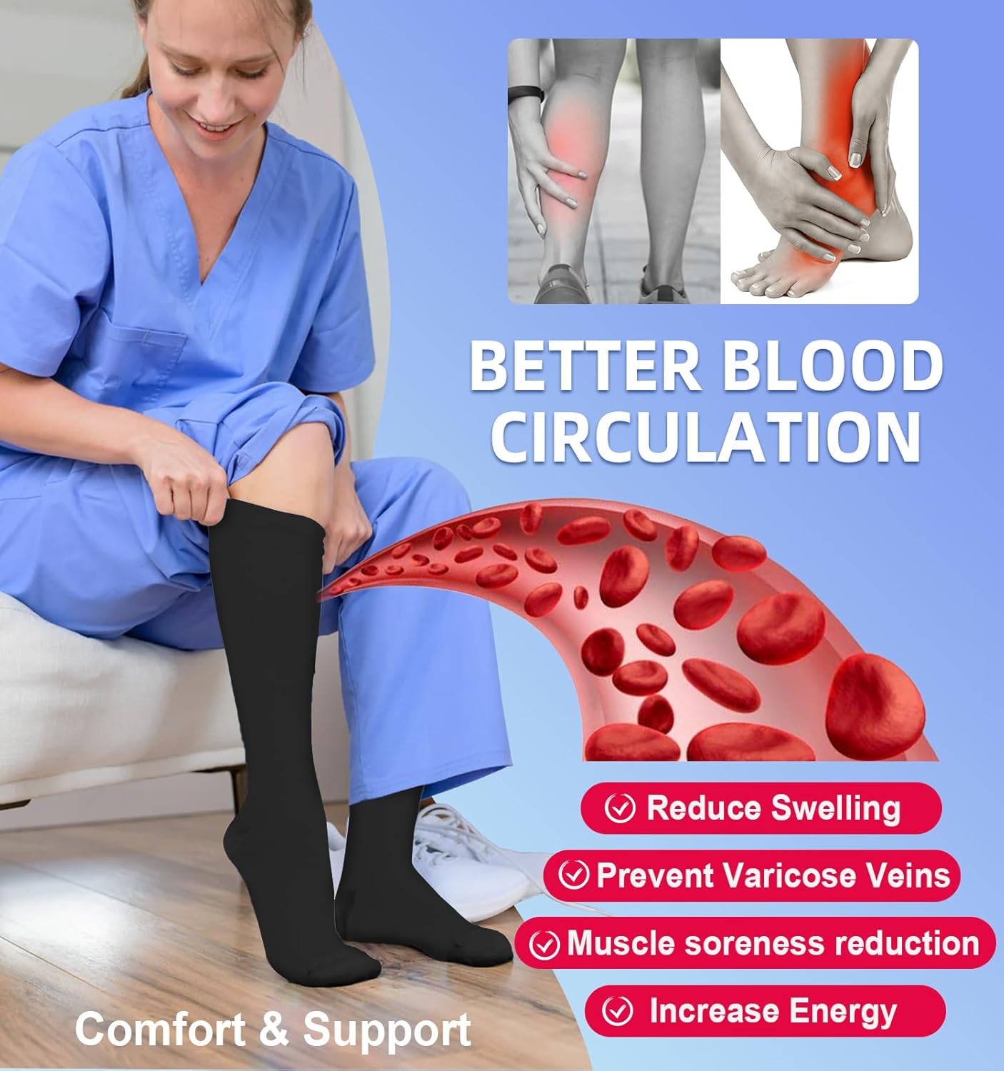 Support for Travel & Work – Perfect as travel compression socks, flight compression socks, or medical compression socks, they promote blood flow and fight fatigue during long flights, standing shifts, or desk work, giving you lasting energy and healthier legs every day.