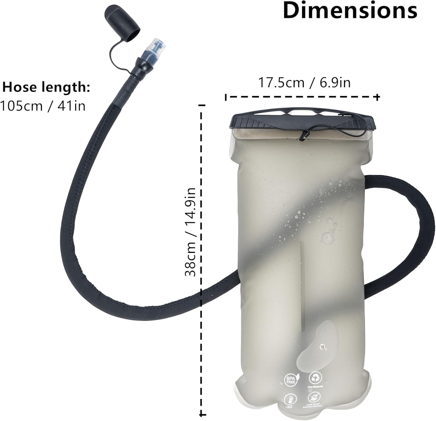 【Water Bladder for Hiking Backpack】This 2 liter hydration bladder and 14.9” x 6.9” perfect size is compatible with most sizes hydration backpacks. 2 liter capacity is almost fit for all sports,like hiking running. It conveniently quick and easy to have a drink.