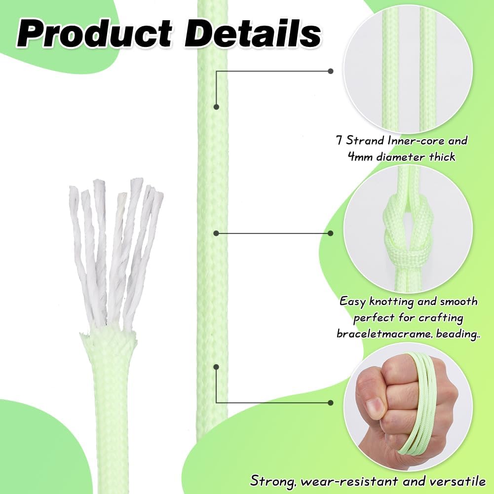 Glow in The Dark Design: Our parachute rope is designed to glow in the dark, color of green, looks bright, is suitable for making accessories for outdoor activities