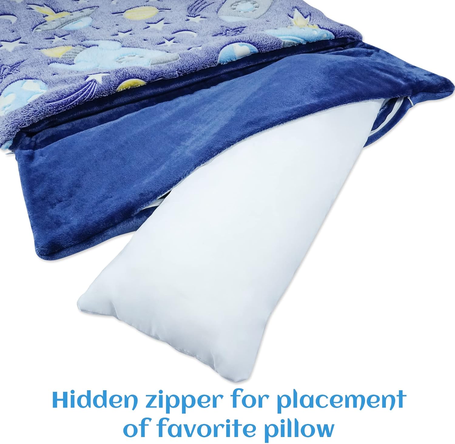 PERFECT GIFT FOR KIDS-This light-up sleeping bag is the perfect gift for kids. Toddler sleeping bag is not only warm, soft, and comfortable, but it also has fun glowing features that kids will love. Your kid can take this sleeping bag to day care, preschool, kindergarten, grandma’s house with a portable sling bag.