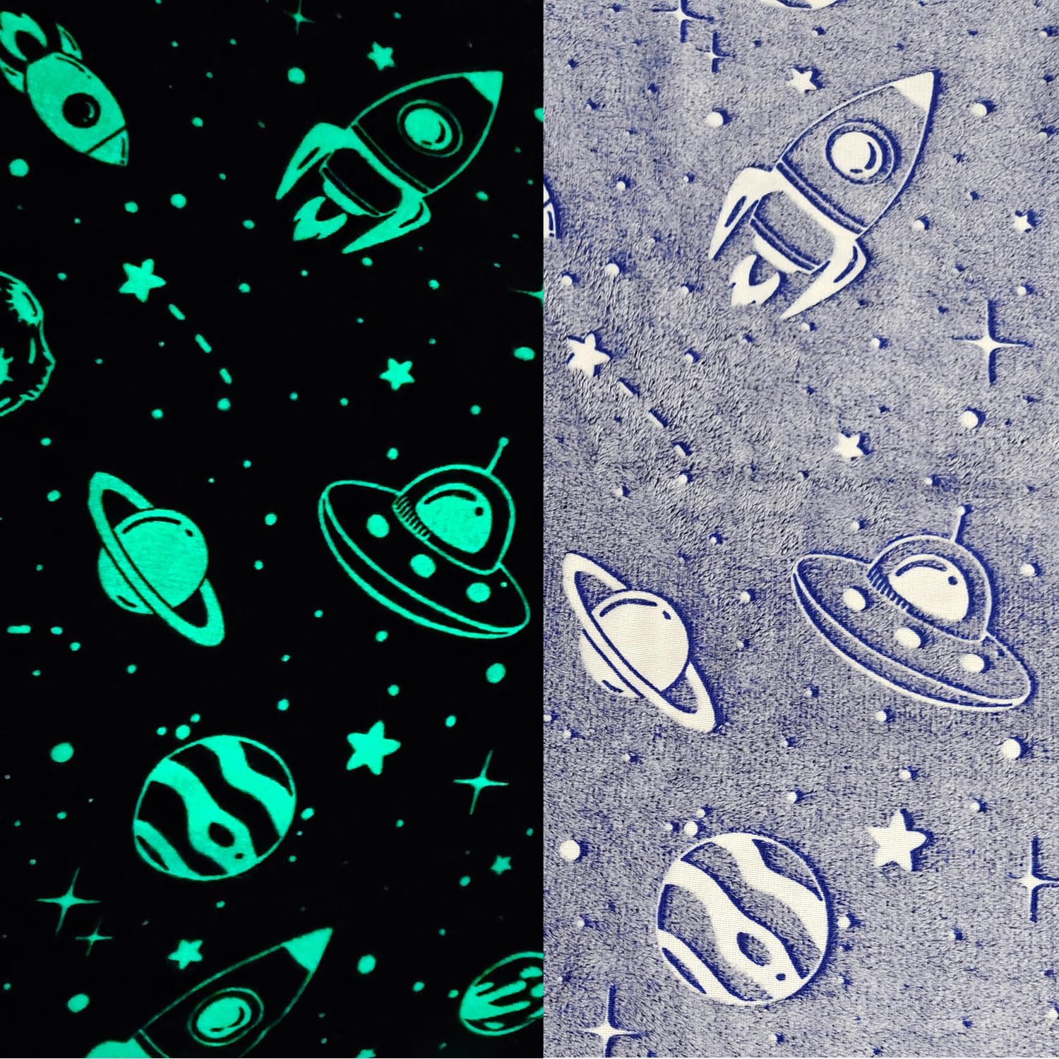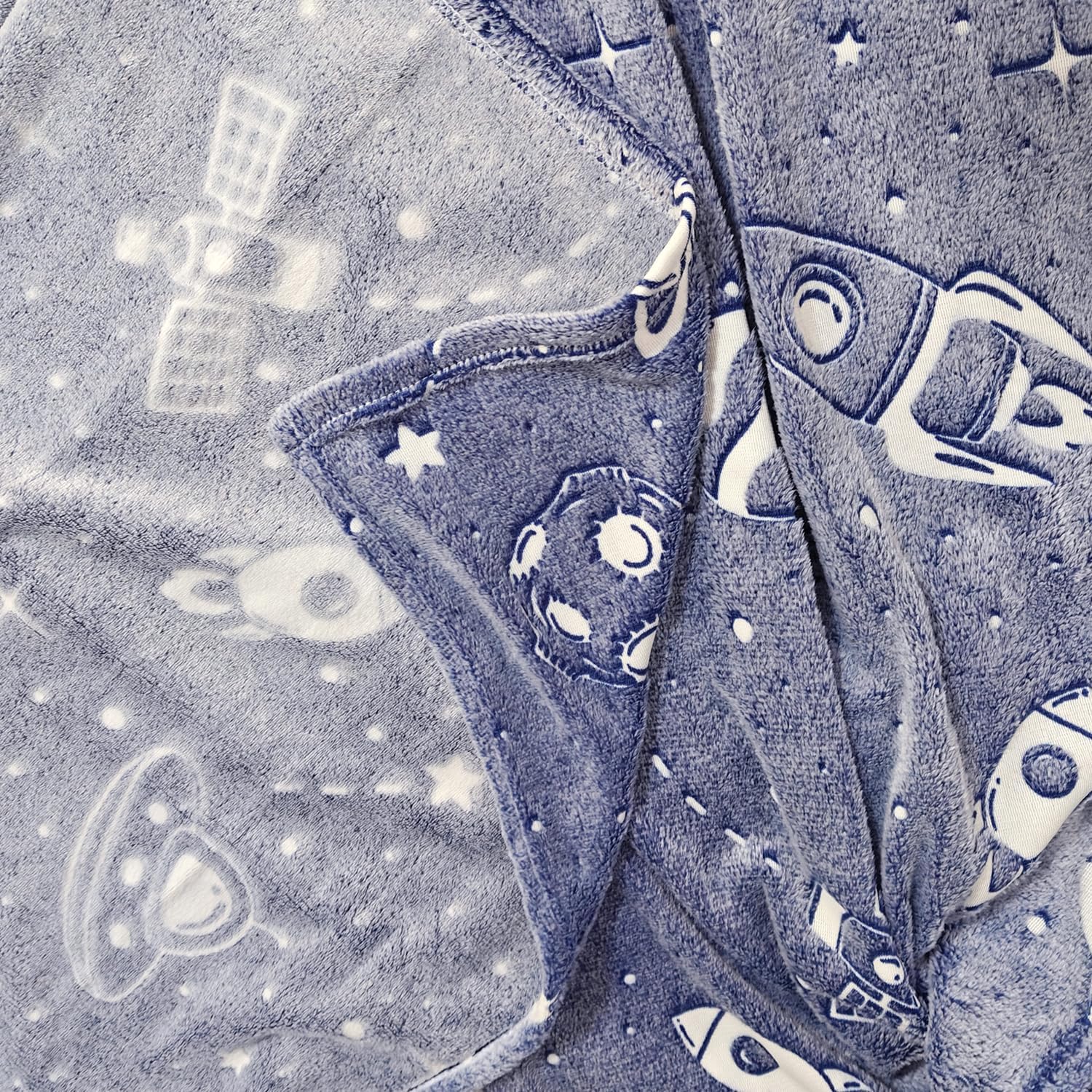 DESIGN: Cartoon printing and glowing design, rich space elements, more popular with children. 3D printing and colorful pattern is not only popular with children, but also in the world of mom and dad. When sleeping at night, children will feel very relieved to have their favorite space patterns and soft blankets with them.