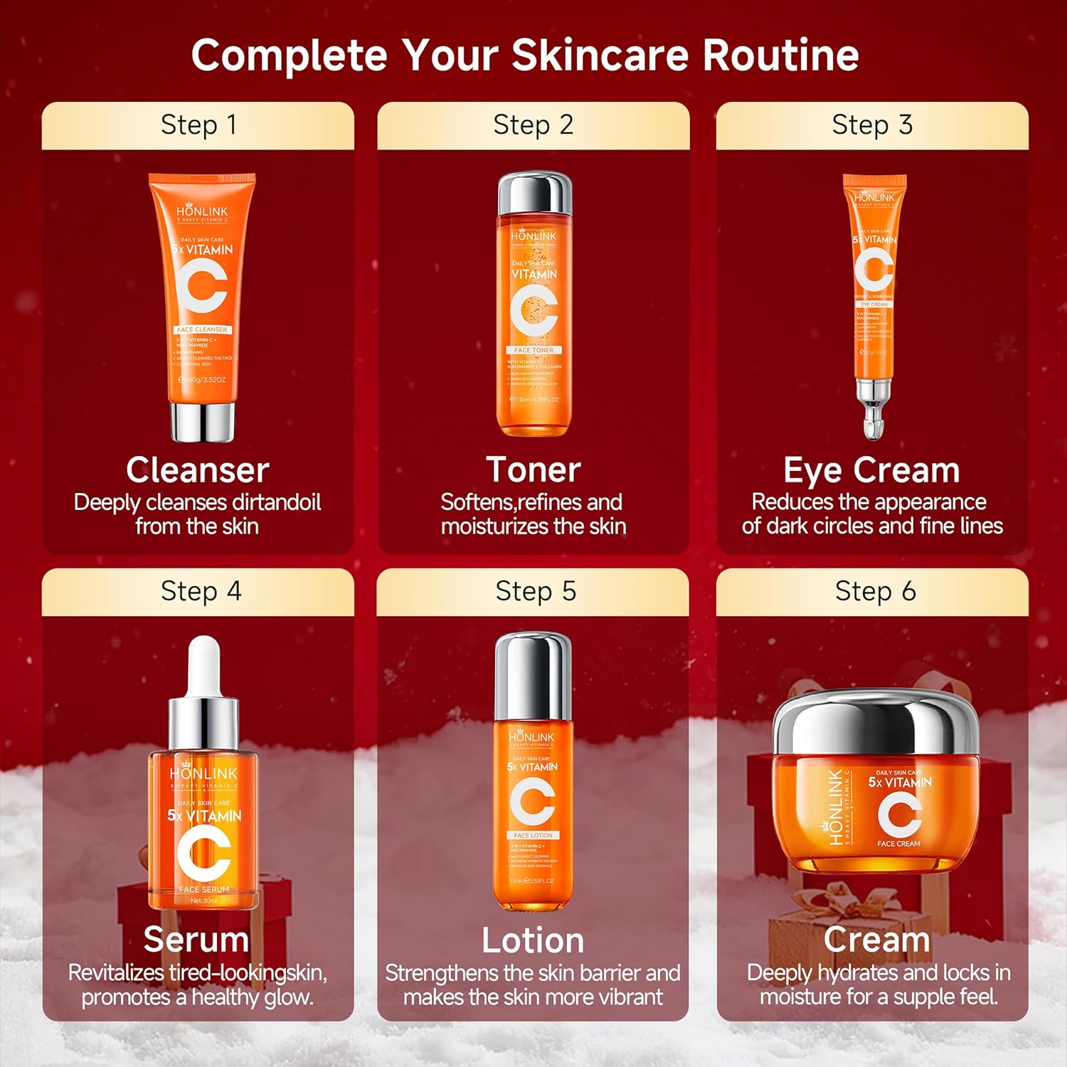 π Perfect Holiday Gift Set β HONLINK 6-in-1 Complete Skincare System: Cleanse, hydrate, glow, repair, and moisturize in one set for 24-hour glowing skin. A complete Christmas skincare solution ready to gift.