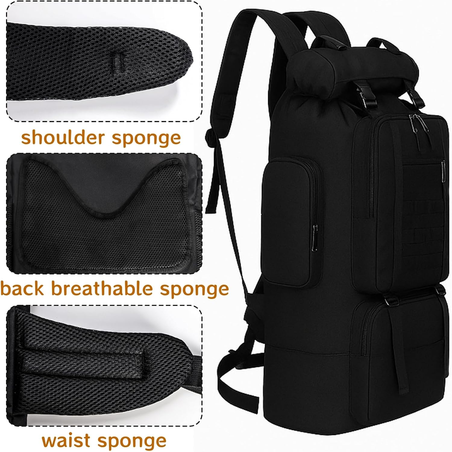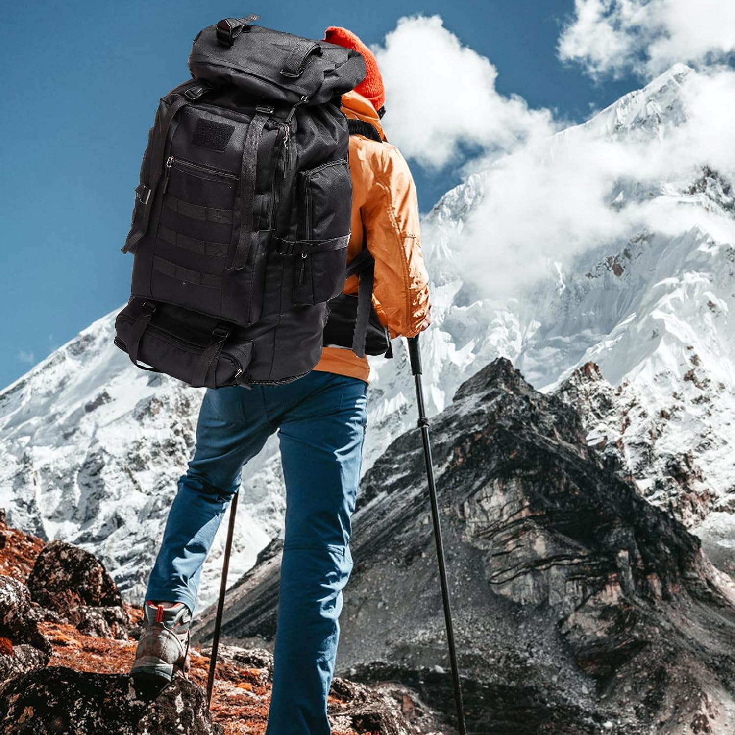 Goaste 100L Camping Hiking Backpack, Molle Military Tactical Rucksack, Waterproof Large Travel Daypack, Adjustable Survival Hunting Sports Bag for Men and Women Hiking, Camping, Touring(Black)
