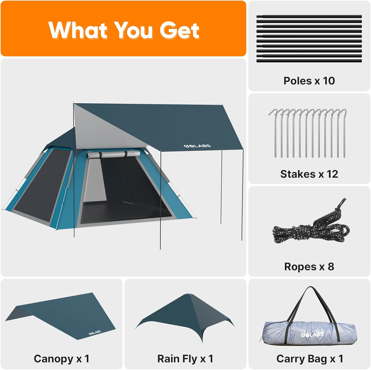 Quick 3-Minute Setup : The Golabs camping tent features an innovative pre-attached poles design for instant setup—just unfold it like an umbrella! In just 3 minutes, even beginners or solo campers can set it up quickly. Perfect for quick camping trips!