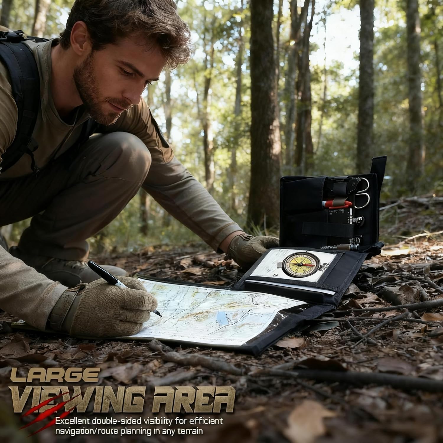Dedicated Compass Pouch: Holds U.S.-issued or popular consumer compasses (like Brunton or Suunto) securely, preventing damage during off-road drives to trailheads or hikes through rough terrain.Military Protractor Slot: Keeps your military protractor (essential for calculating distances on U.S. Geological Survey topo maps) in place, so you never waste time searching for it when plotting a route to a remote lake or tactical objective.Multi-Size Pockets for Tactical Stuff: Stores U.S.-favored tactical gadgets—tactical scissors, mini flashlights (like Streamlight), or fire starters—perfect for camping trips in the Rockies or emergency preparedness during hunting season. The dedicated pen case fits U.S. standard pens/markers for annotating maps, and the transparent ID pocket holds your national park pass or hunting license.
