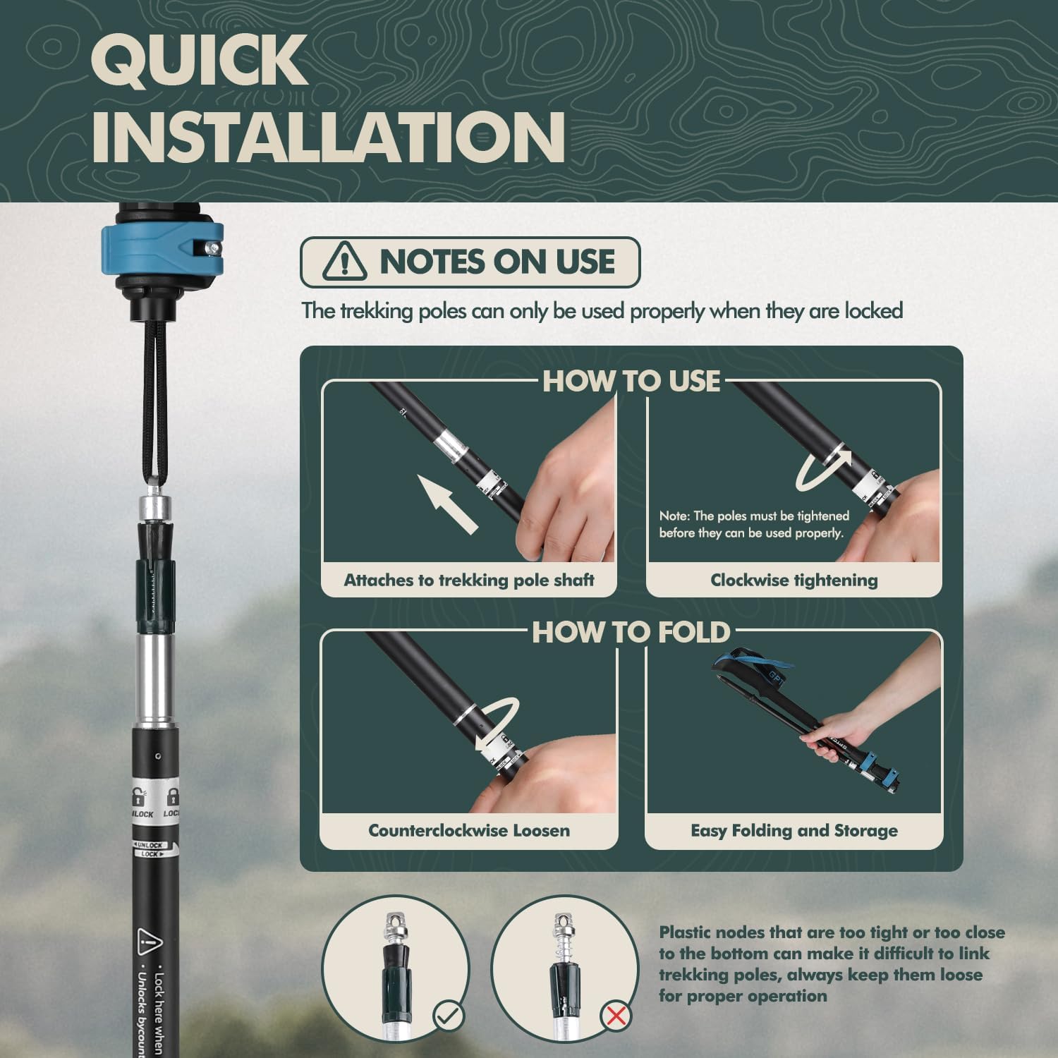 【Premium Aircraft-Grade Trekking Pole for Hiking】:Constructed from high-strength aluminum alloy, this durable walking stick withstands rigorous outdoor use. The upgraded locking mechanism ensures secure positioning, making it one of the most dependable collapsible trekking poles available.