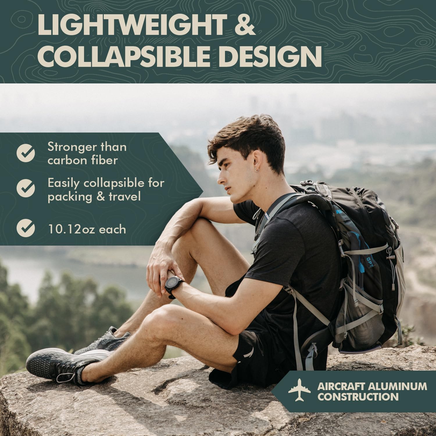 【Ultralight & Ergonomic Hiking Stick】:Weighing only 10.12oz, this collapsible hiking pole features an extended EVA foam handle that provides superior sweat absorption and slip resistance. The ultralight trekking pole reduces arm fatigue during long hikes while maintaining excellent stability, making it perfect as a walking stick for women or men.