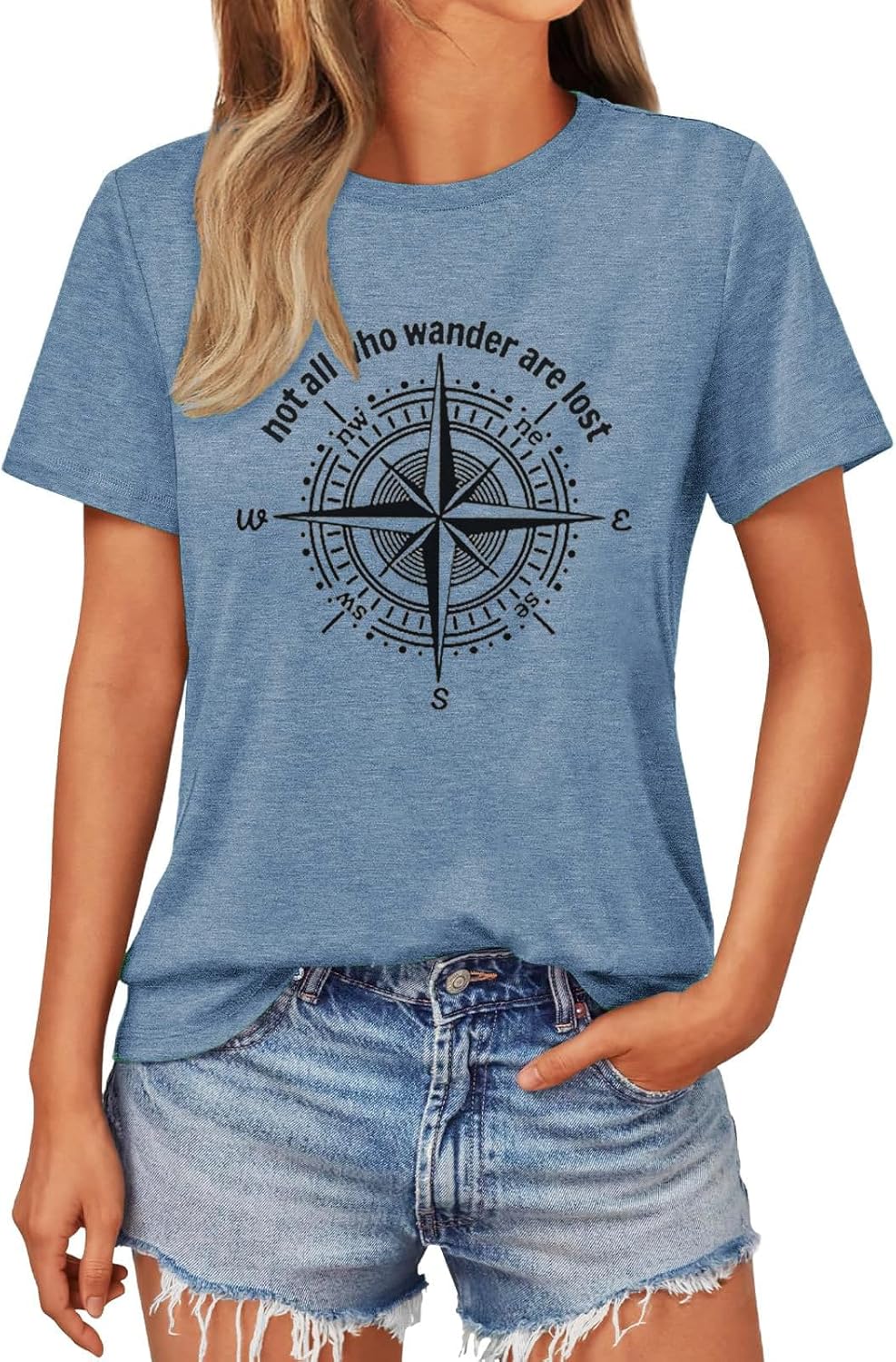 Summer T-Shirts for Women Compass Graphic Tees Vintage Workout Athletic Tops