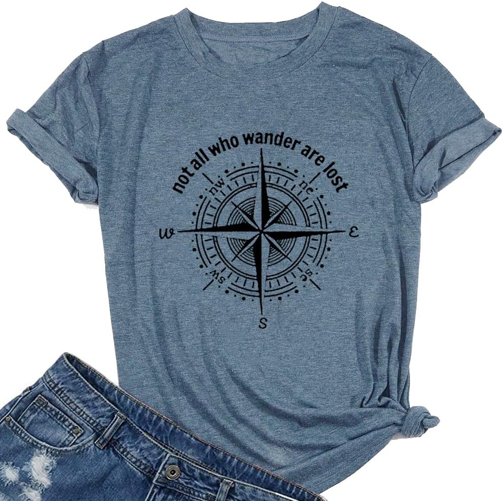 Summer T-Shirts for Women Compass Graphic Tees Vintage Workout Athletic Tops