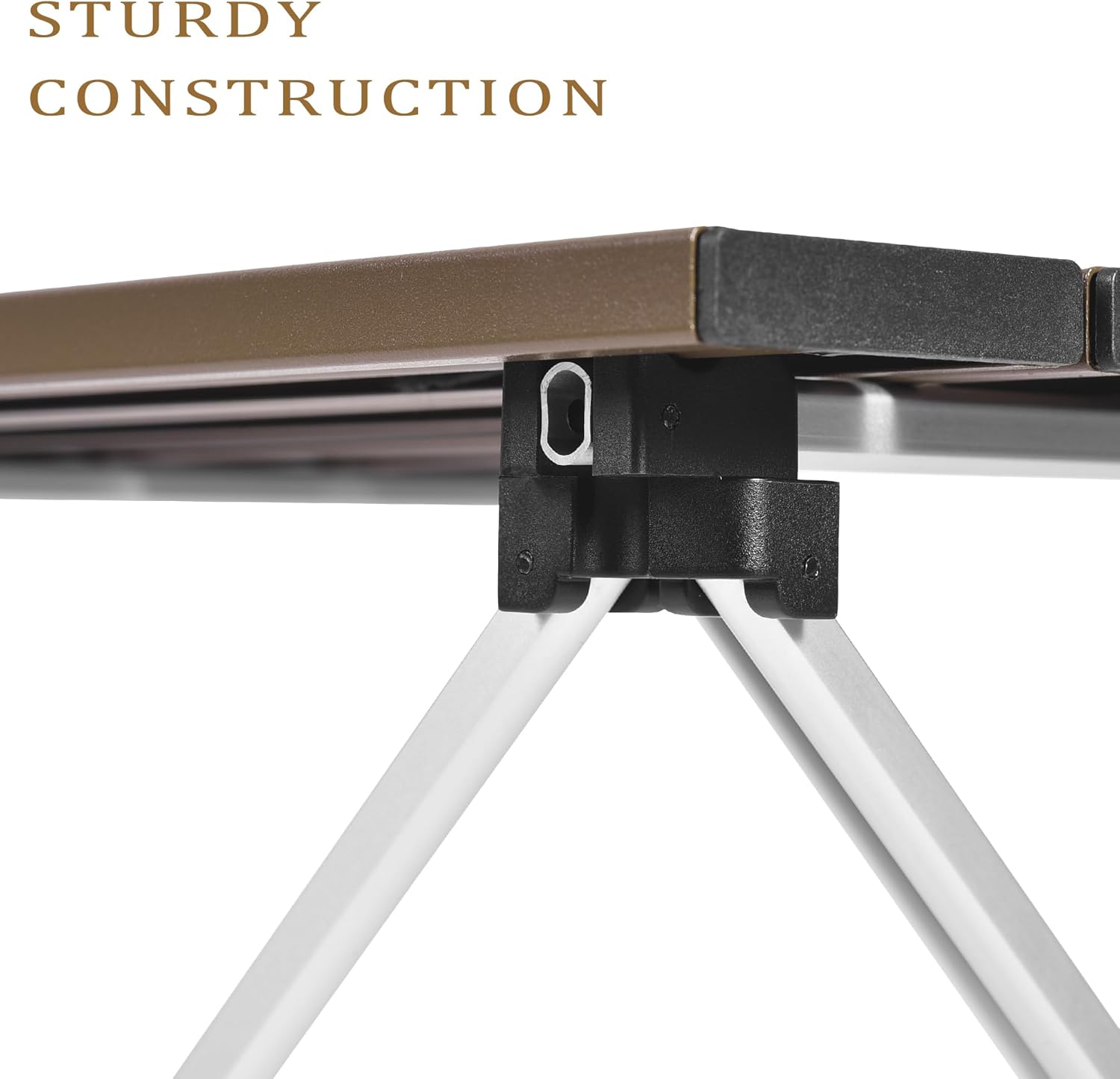 Sturdy Construction —- Our folding camping table is made of heavy-duty aluminum, the legs will not fold, bend or fall off with the stable foot cap, allowing it to be used on different terrains without the risk of tipping over. The triangular frame and sturdy joints make the foldable camping table can support 55 pounds of weight. So you can use this table for picnics or cooking with complete confidence