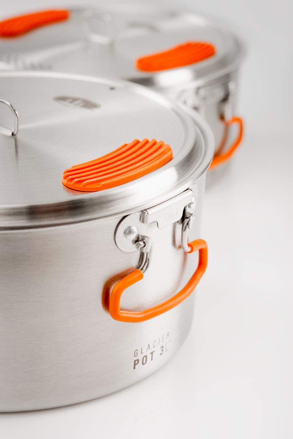 RUGGED CAMP COOK SYSTEM: Designed for car camping, basecamp or campfire cooking—stainless steel pots and fry pan deliver consistent, even heat whether boiling, simmering, or sautéing for two to four people.