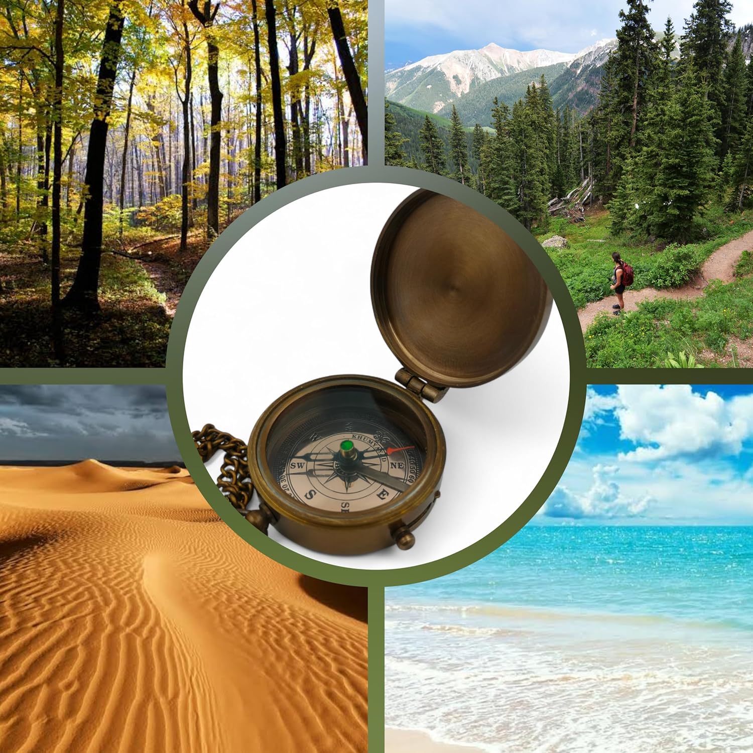 Comes with 76.2 cm brass chain, fully handmade item, fully functional compass shows the instructions.