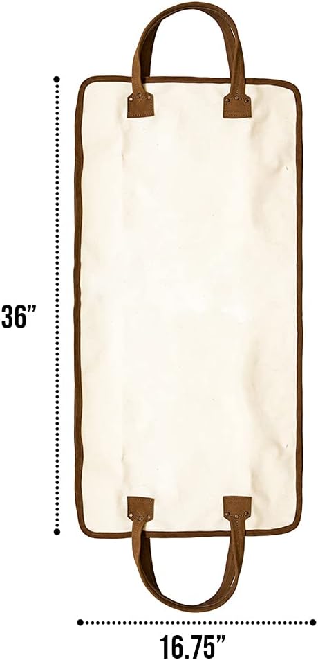 IDEAL FOR CAMPING OR AT HOME: Perfect for your cabin at the lake or in the woods, to add a stylish touch and a camping feel to your trips to the great outdoors. Comfortably fits enough wood to keep your fire roaring all night long. The Raw Canvas keeps your wood dry and doesn’t absorb water from any damp logs. Easily fits more or less 18 logs of wood at 18 inches long.