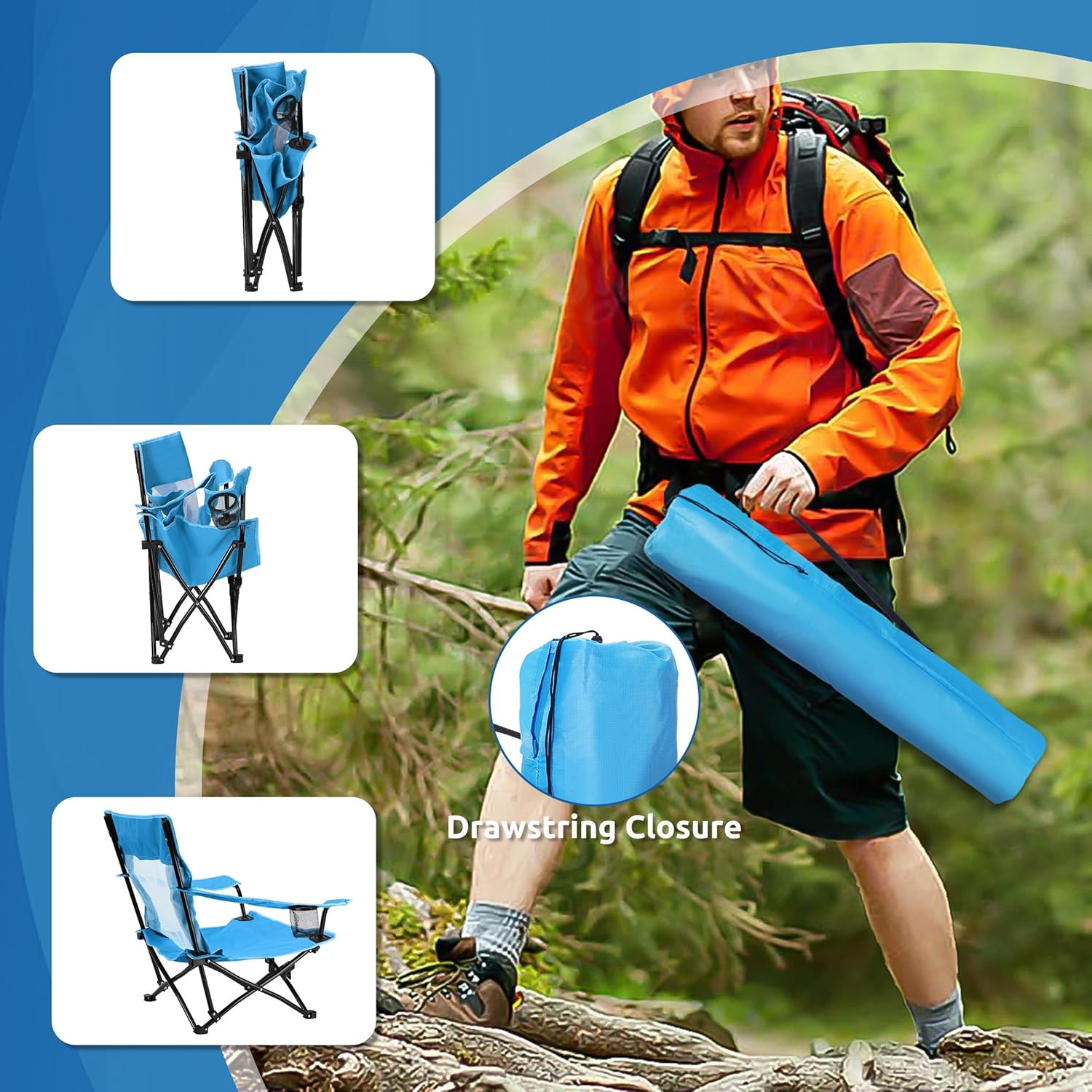 Portable & Easy Carrying – Each chair measures 28 x 6 inches when folded, easy to moving and carrying, folding and opening in a breeze, no assembly required, Equipped with 2 blue storage bags with drawstring closure for convenient storing and backpacking, meets your outdoor needs