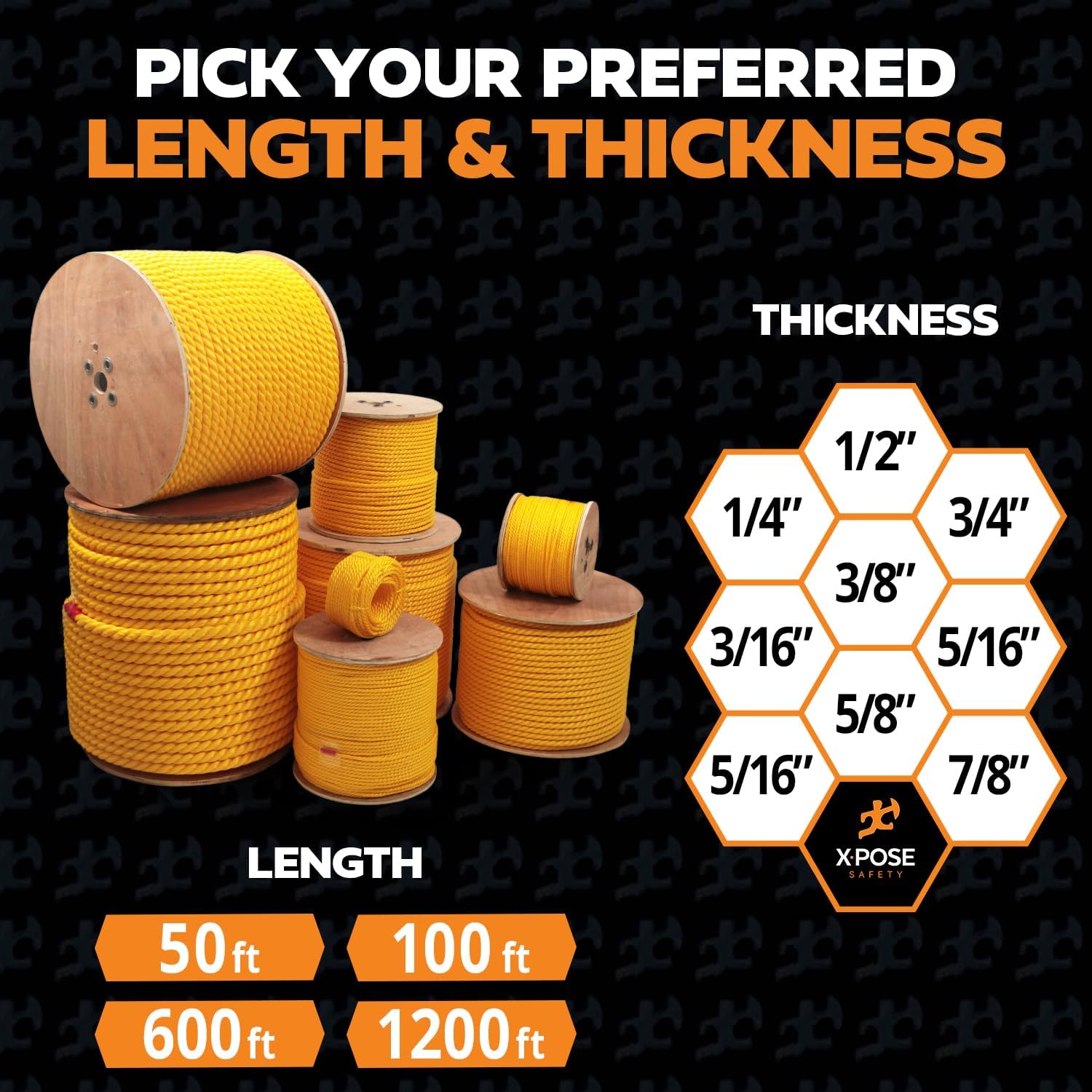 Bright and Easy to Handle: The bright finish on this yellow rope makes it ideal for safety applications, as it stands out in low light or cluttered areas. Its design incorporates the benefits of poly rope 1/4 inch, giving it superior weather resistance and toughness. Perfect 1/4 polypropylene rope for boating, construction, outdoor sports, camping, fencing or even crafting.