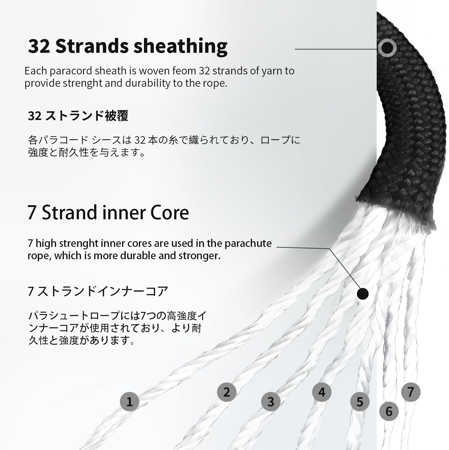 【TENSILE STRENGTH】The thickness of the paracord is 4mm. The inner core has a total of 7 strands and can withstand a gravity of 110 pounds. It has a smooth surface and a good touch