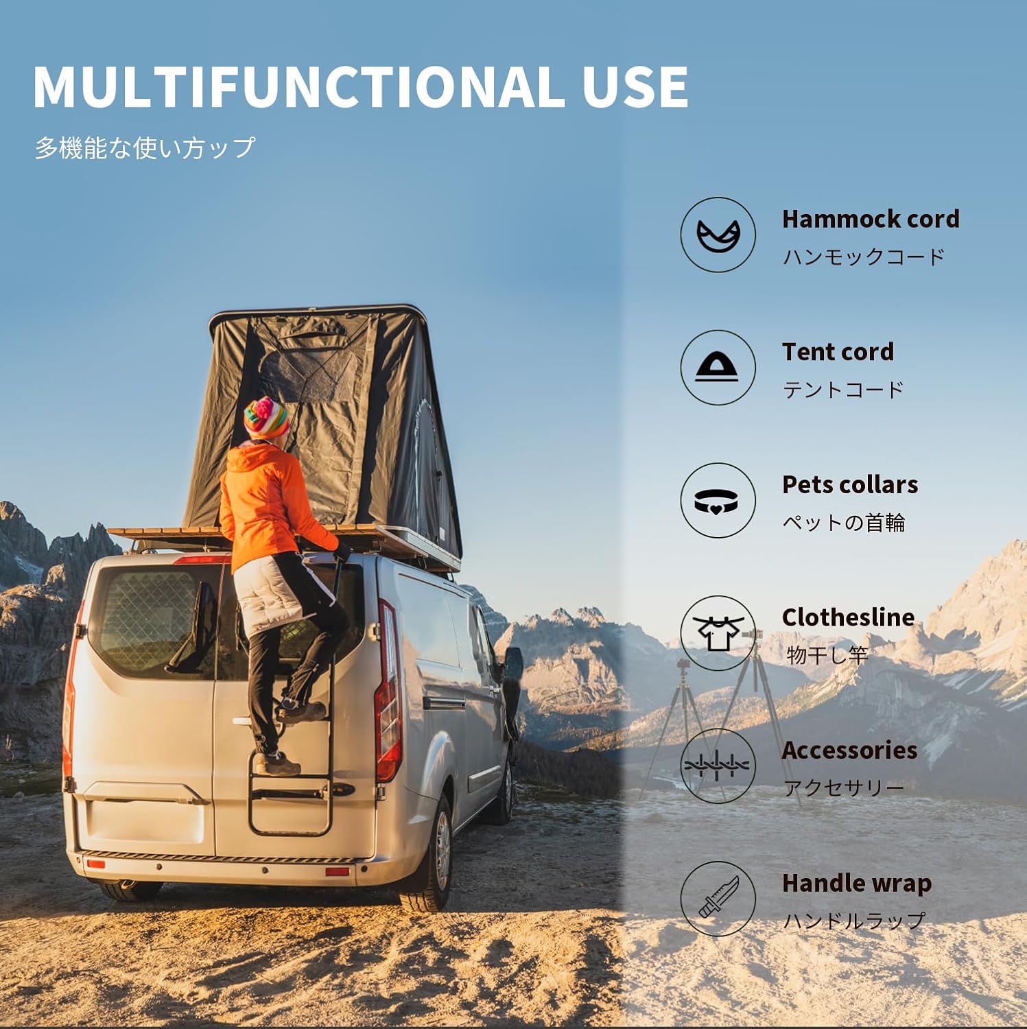 【WIDE APPLICATION】The flexibility and strength of YCZS camping clothesline make it widely used. Parachute cord is great for camping cord, hiking cord, parachute cord and craft parachute cord & DIY craft projects