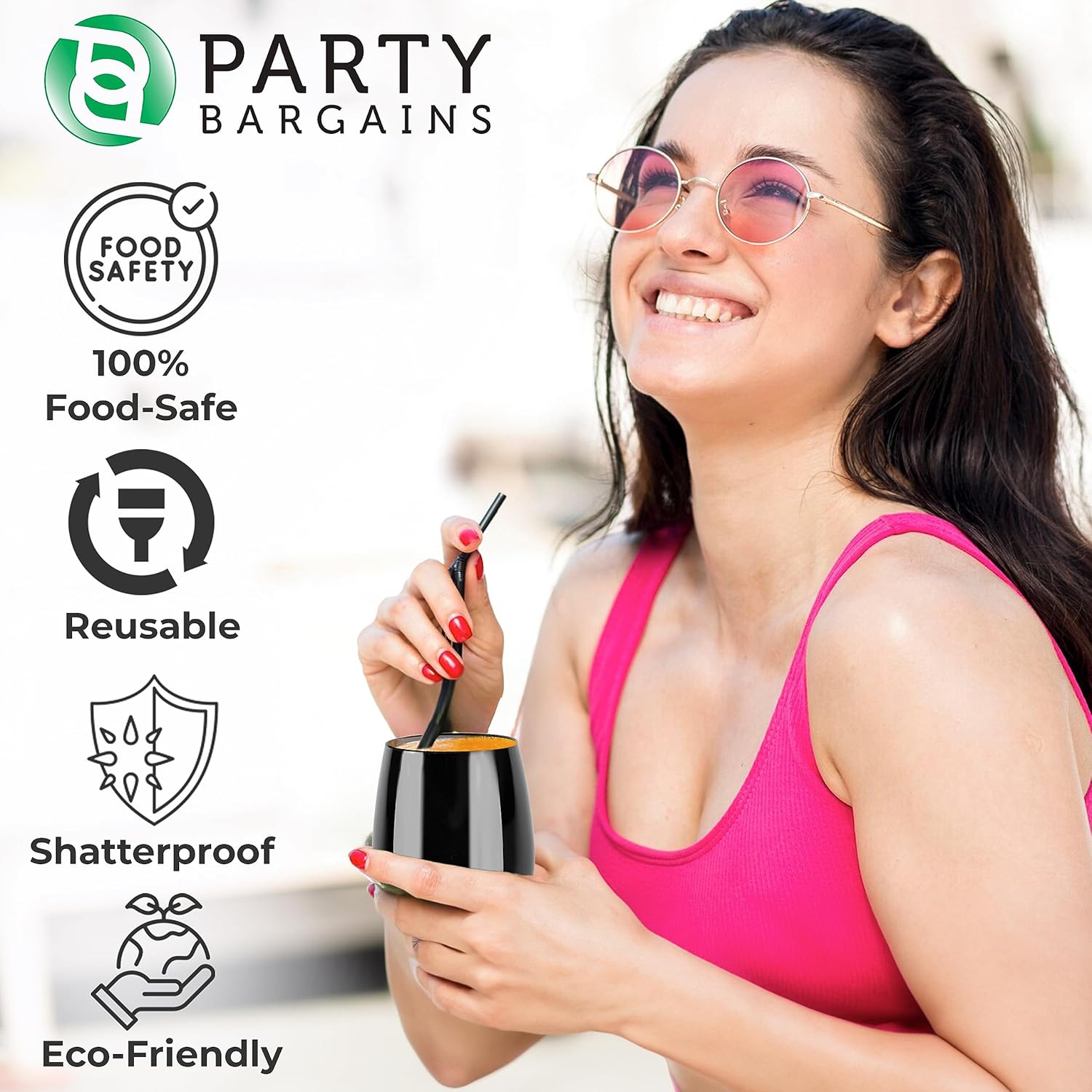 REUSABLE OR DISPOSABLE – Designed for convenience, these plastic wine glasses can be hand-washed and reused or responsibly disposed of after events. Not dishwasher safe.