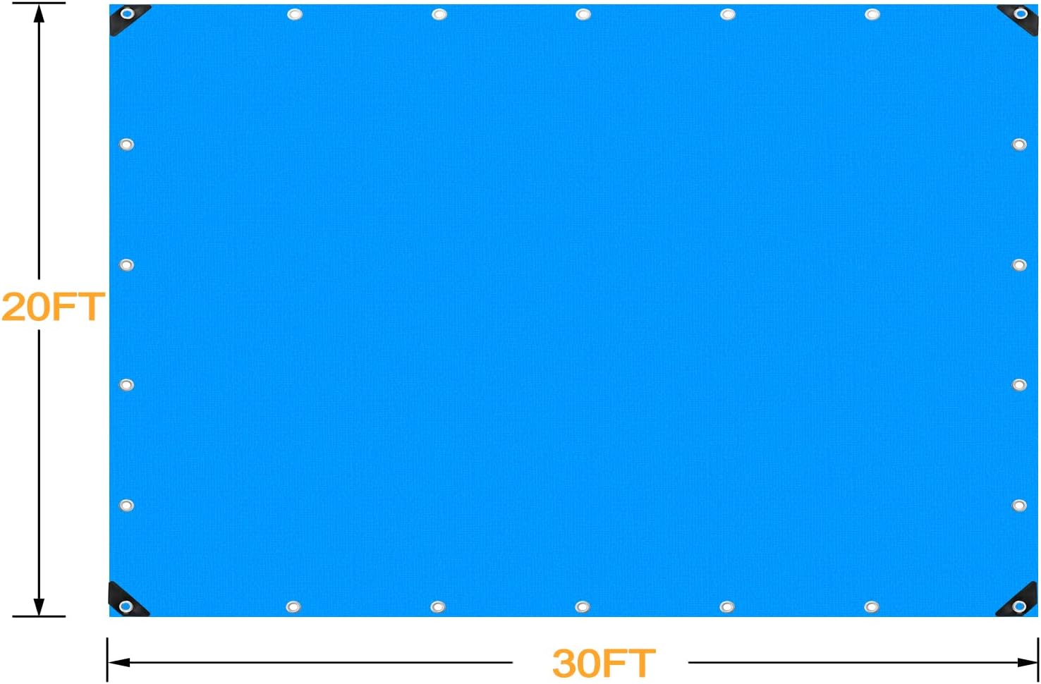 16 Mil Tarp 20’x30′ –The tarps heavy duty waterproof 20×30 has a 16 mil thickness, 8oz per square yard, and a 14 x 14 weave count. This heavy duty tarps waterproof has the strength and durability you need. This tarpaulin uses a thickness of 16 mils, which is a relatively thick material. The waterproof tarp is very heavy and can basically meet all purposes. The large tarp will not be easily worn or torn and is very strong. The size of the rain tarp is the finished size, you will get a full-size tarp.