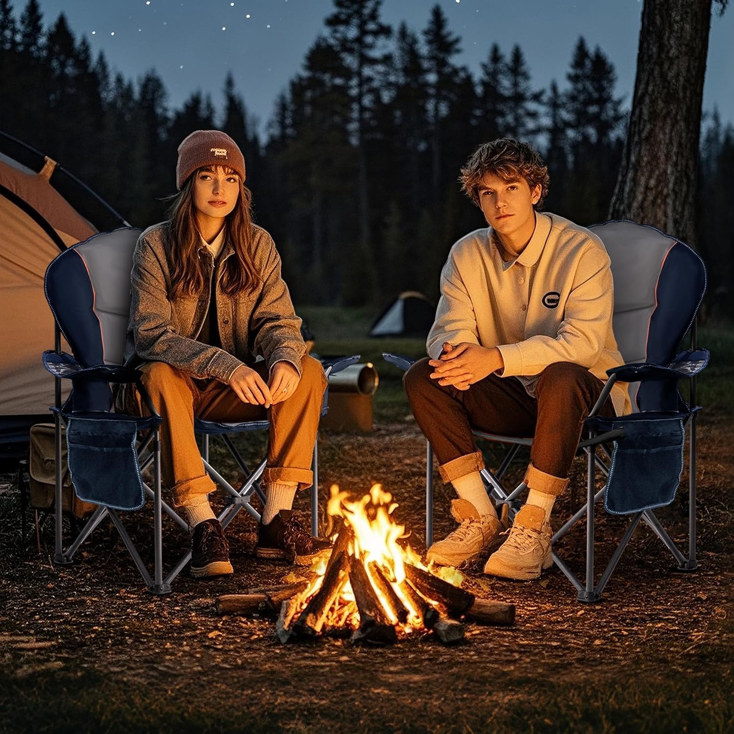 EXTRA-WIDE SEAT & ERGONOMIC COMFORT: 37.4″ oversized camping chair for big and tall adults with 19.5″ ergonomic height. High-density foam padding + adjustable armrests + removable headrest deliver first-class relaxation