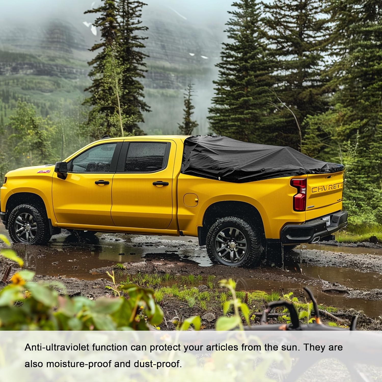 【Reinforced Security Features】 Designed for maximum stability, thisTruck bed tarp covers comes with rust-proof aluminum grommets spaced every along all edges. The premium reinforcement kit includes 4* 157.48inch nylon ropes, 4 bungee cords, and ground stakes for secure fastening in any condition. Use it confidently as Outdoor Furniture Covers Waterproof during storms or as emergency shelter during camping trips -avoiding tearing caused