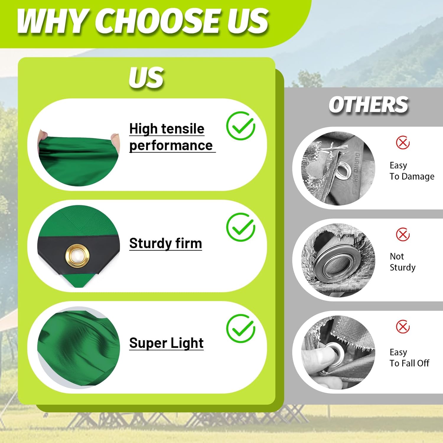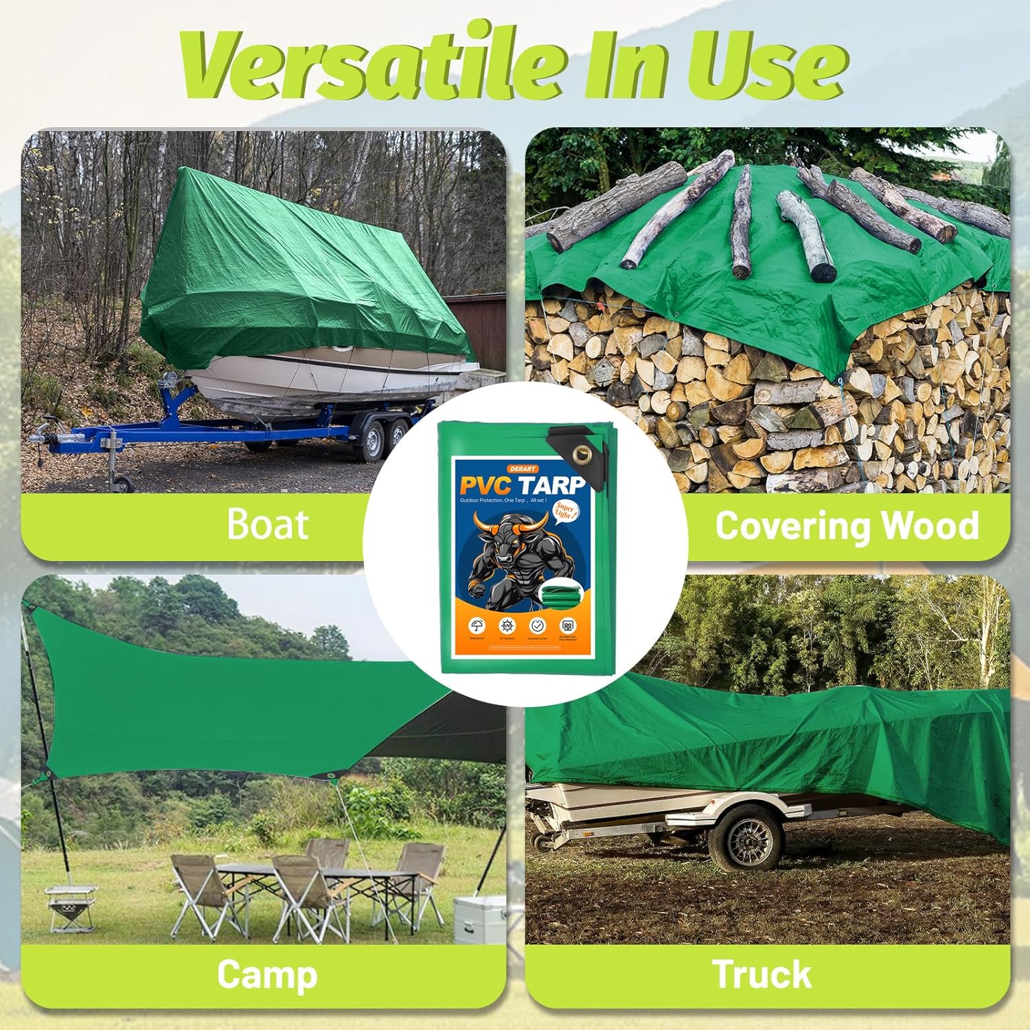 Versatile Applications: Ideal for camping, truck covers, boat covers, motorcycle covers, patio protection, emergency shelters, and lumber stacking. Reliable, all-weather coverage for all your needs.