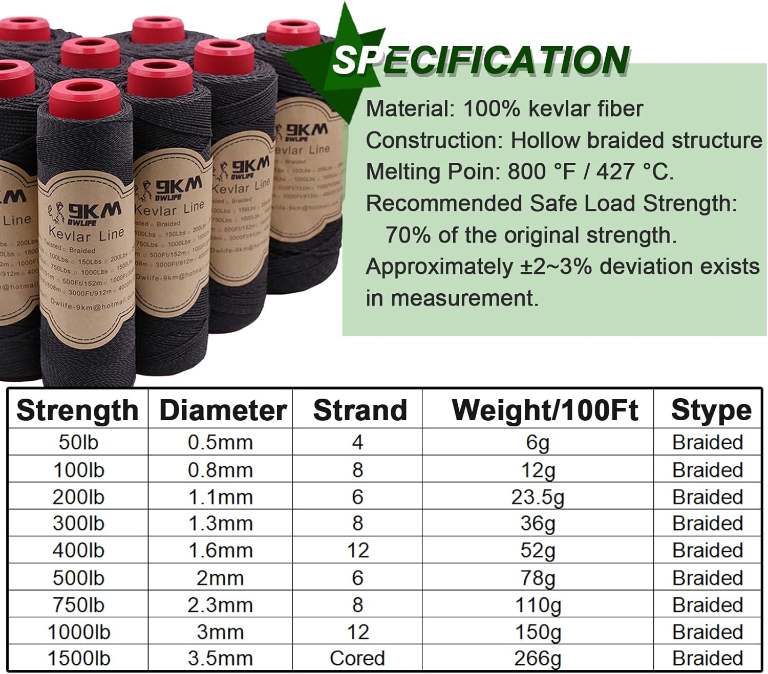 [Multipurpose Outdoor Line] 9KM DELIFE Kevlar rope with high friction resistance, our Kevlar string is perfect for tough tasks such as camping, hiking, and hunting.