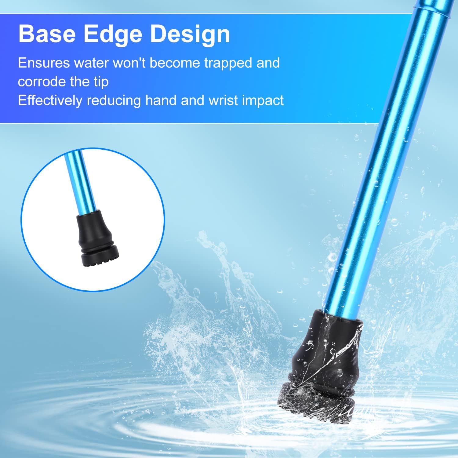 Cane feet raised base edge design ensures water won’t become trapped and corrode the tip; non-slip contacts provide extra traction and stability on almost any surface, effectively reducing hand and wrist impact while preventing slippage