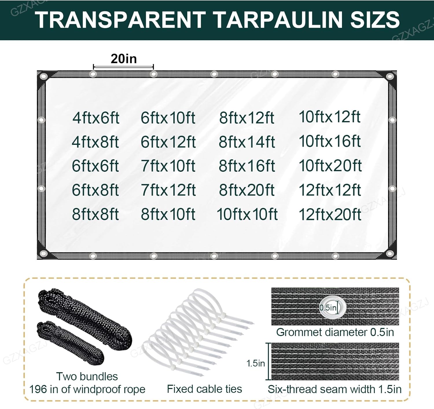 GZXAGZJ is dedicated to creating high-quality,heavy duty clear tarp. When a storm obscures your view,we’ve created a 14-mil,ultra-clear tarp that keeps you hidden and visible.It’s 99% waterproof and 100% transparent.Admire the dancing raindrops and count the twinkling stars.True protection shouldn’t obscure sunlight or vision