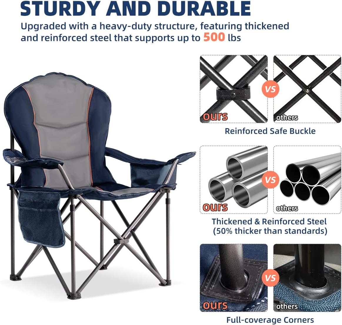 🥾 Large Camping Chair with Side Table Heavy Duty 500LBS – Folding Outdoor Chair with Cooler Bag (Blue & Gray, 2 PCS) — Review, Key Features & Current Price