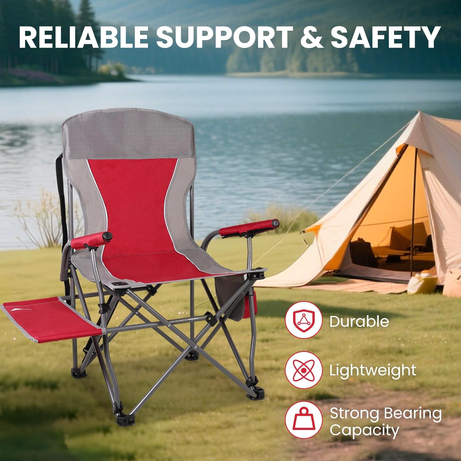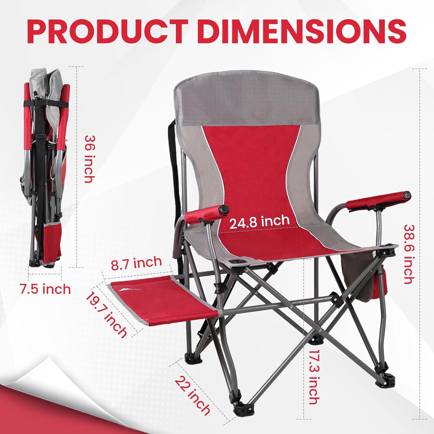 Ultra-Compact: This camping chair unfolds to 24.8×22×38.6 inches and weighs just 9.7 pounds, making it incredibly portable. The binding rope allows for compact storage, ideal for backpacks or car trunks