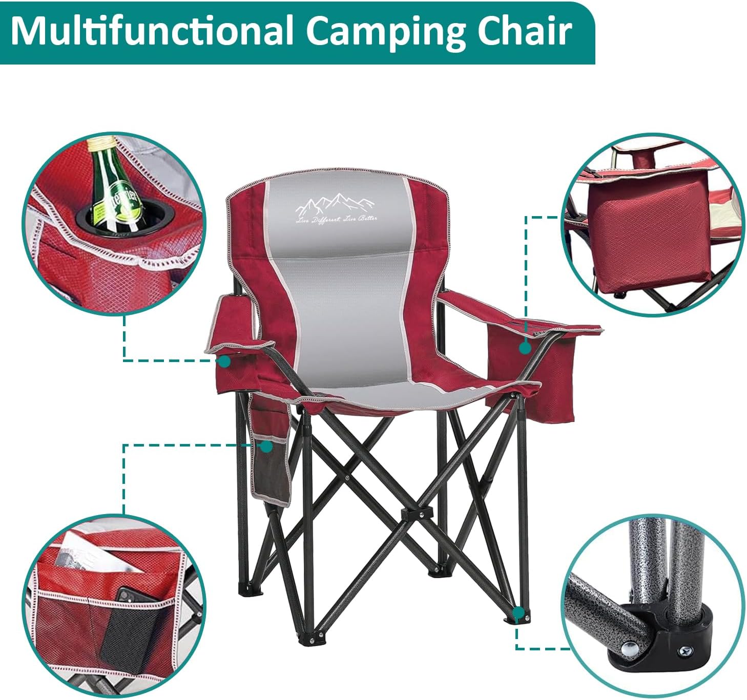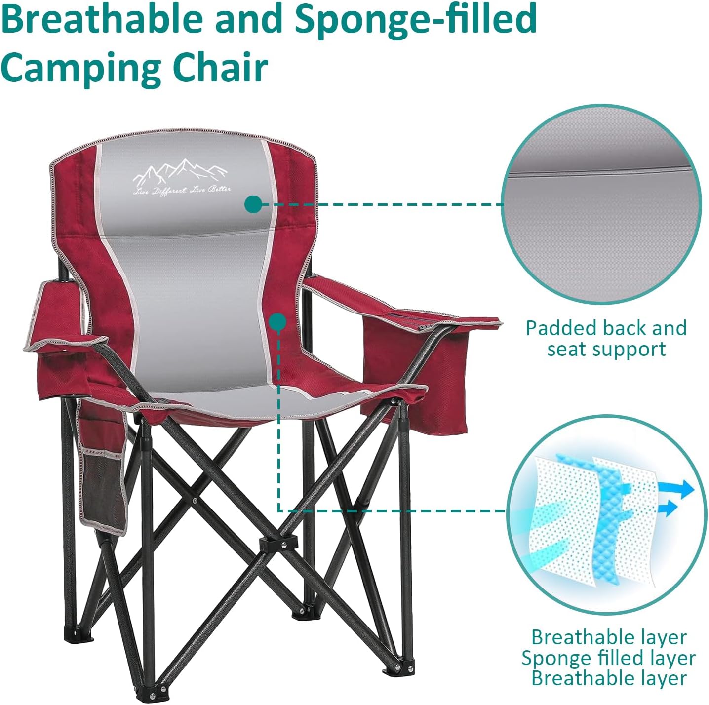 Ultra-Comfortable & Durable: Features a padded seat and backrest with PE-coated fabric for superior comfort and water resistance. The heavy-duty steel frame supports up to 450lbs, making it ideal for all body types and outdoor adventures.