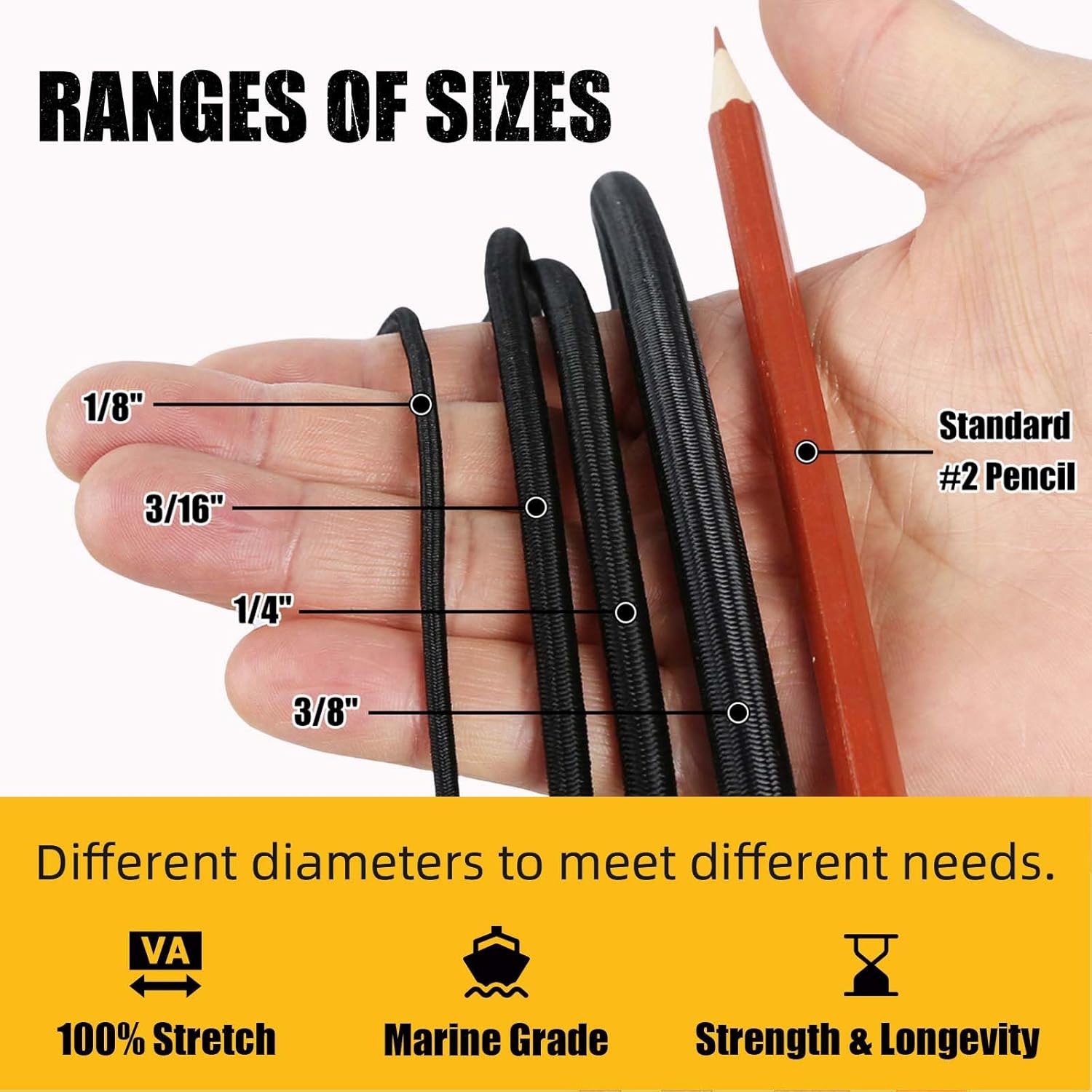 INDUSTRIAL STRENGTH SHOCK CORD: No matter which diameter you choose, you can expect industry-leading strength and resilience