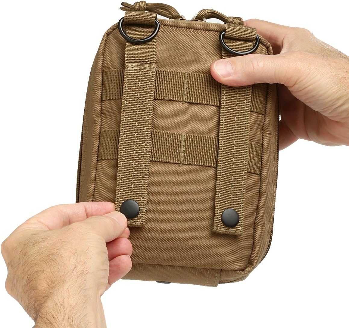 [VERSATILITY PERSONIFIED]: This MOLLE-compatible Med Kit Tactical Pouch securely attaches to all MOLLE gear with two durable straps and strong snaps. Its compact design serves perfectly as a small first aid pouch or IFAK pouch.