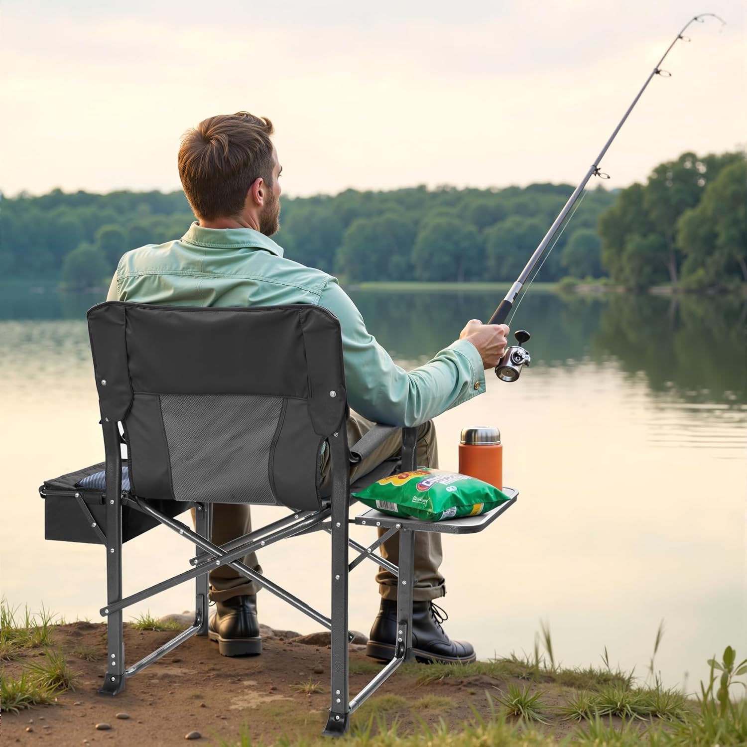 [100% Oxford Fabric ] Our large outdoor folding chair is crafted from a double-layer, rip-resistant 1200D Oxford fabric and features a sponge cushion, ergonomic padded high back and armrests ensuring both durability, breathability and comfort