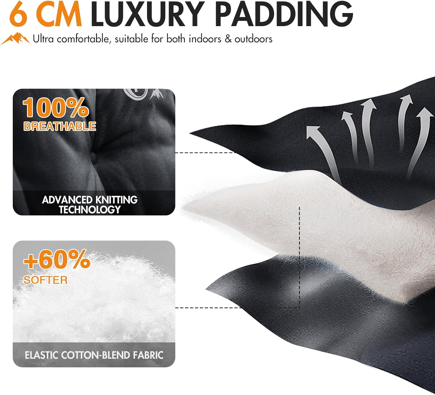 Ultimate Comfort: Enjoy all-around padded comfort with 6cm of plush cushioning in this padded folding chair, creating a moon chair-like experience for ultimate relaxation