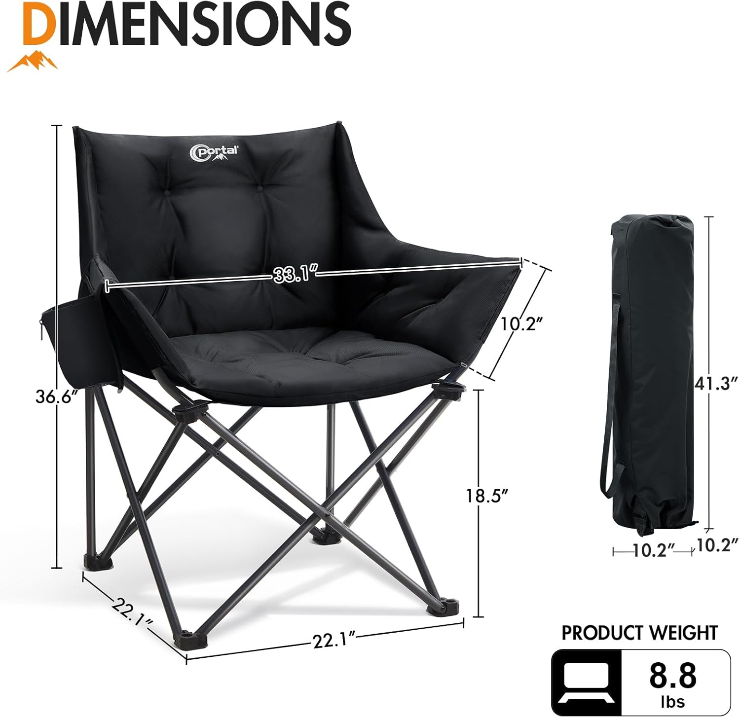 Sturdy & Reliable: Built as an oversized chair, it has a heavy-duty steel frame supporting up to 330 lbs while maintaining a lightweight design (8.8 lbs) for easy transport