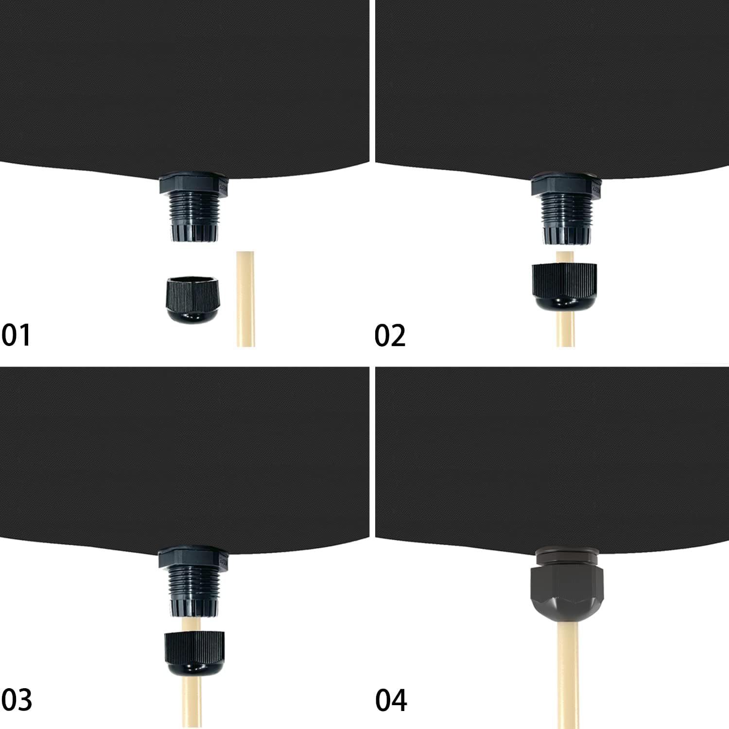 FLEXIBLE INSTALLATION – Heavy-duty grommets and adjustable suspension straps make installation quick and easy. The hose coupler can be connected to 118″ long, 1/2″ diameter garden hoses or drains for safe water management