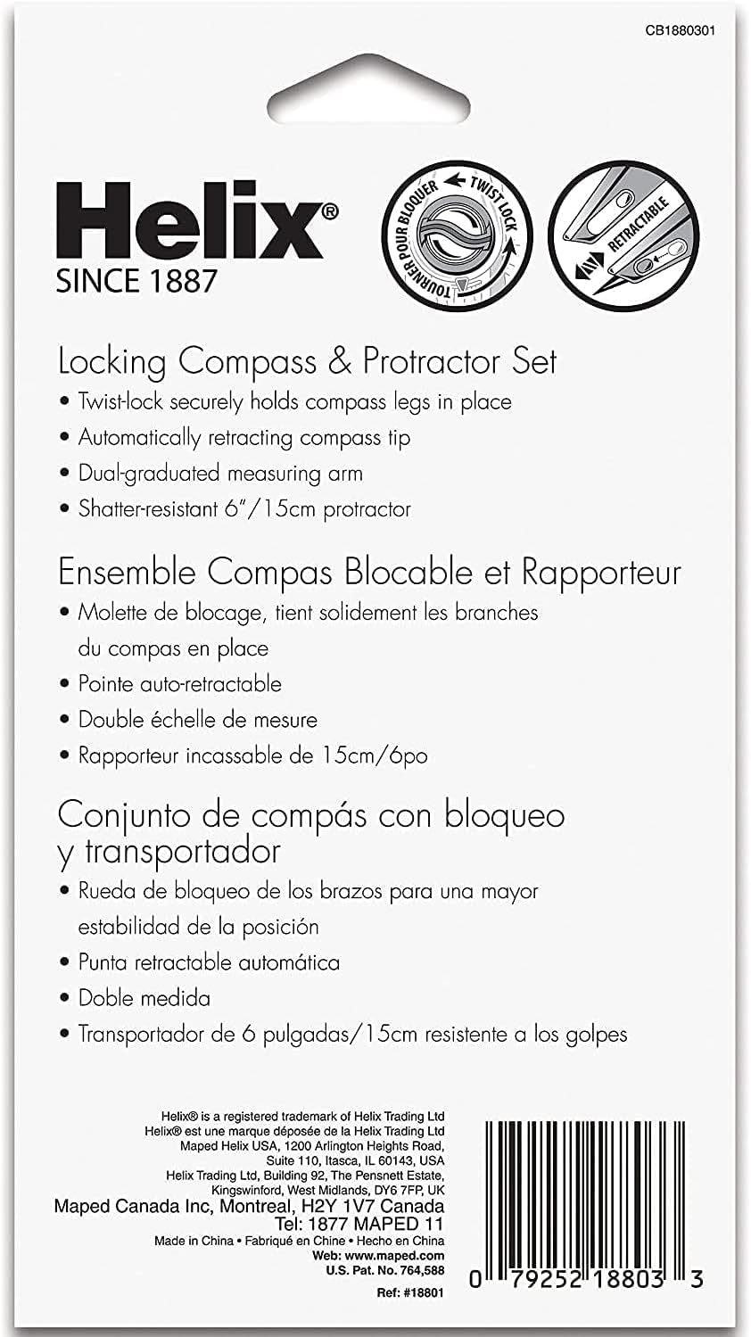 INCLUDES: 1 compass and 1 shatter-resistance protractor in red, blue green or orange (*color is random and cannot be chosen at this time); protractor is 6″/15 cm