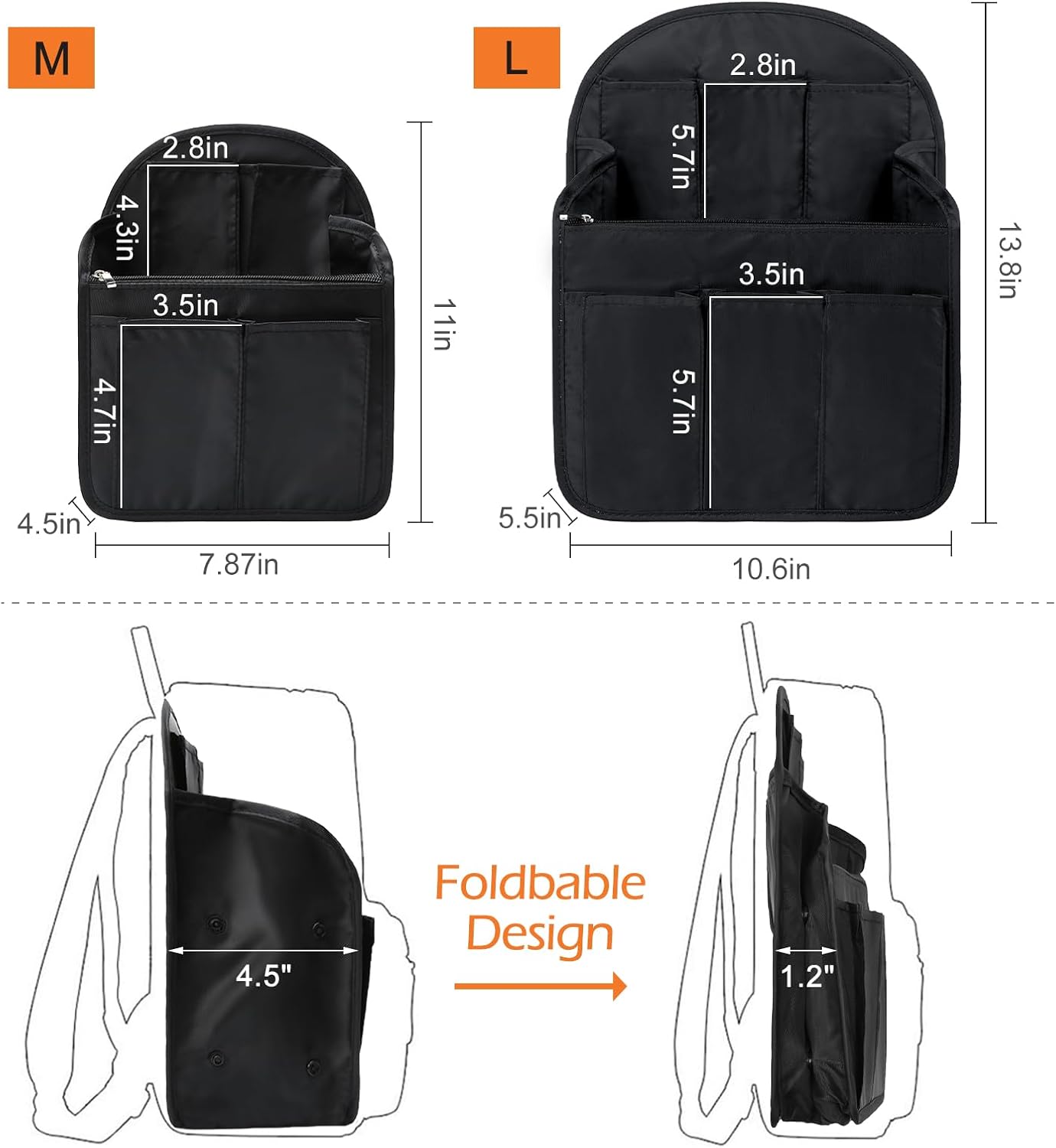 π₯Ύ Surblue Backpack Organizer Insert Liner Hanging Travel Rucksack Purse and Handbag Insert Pocket, High-capacity Divider Foldable Nylon Shoulder Bag Organizer for Men and Women, (Black, M) β Review, Key Features & Current Price