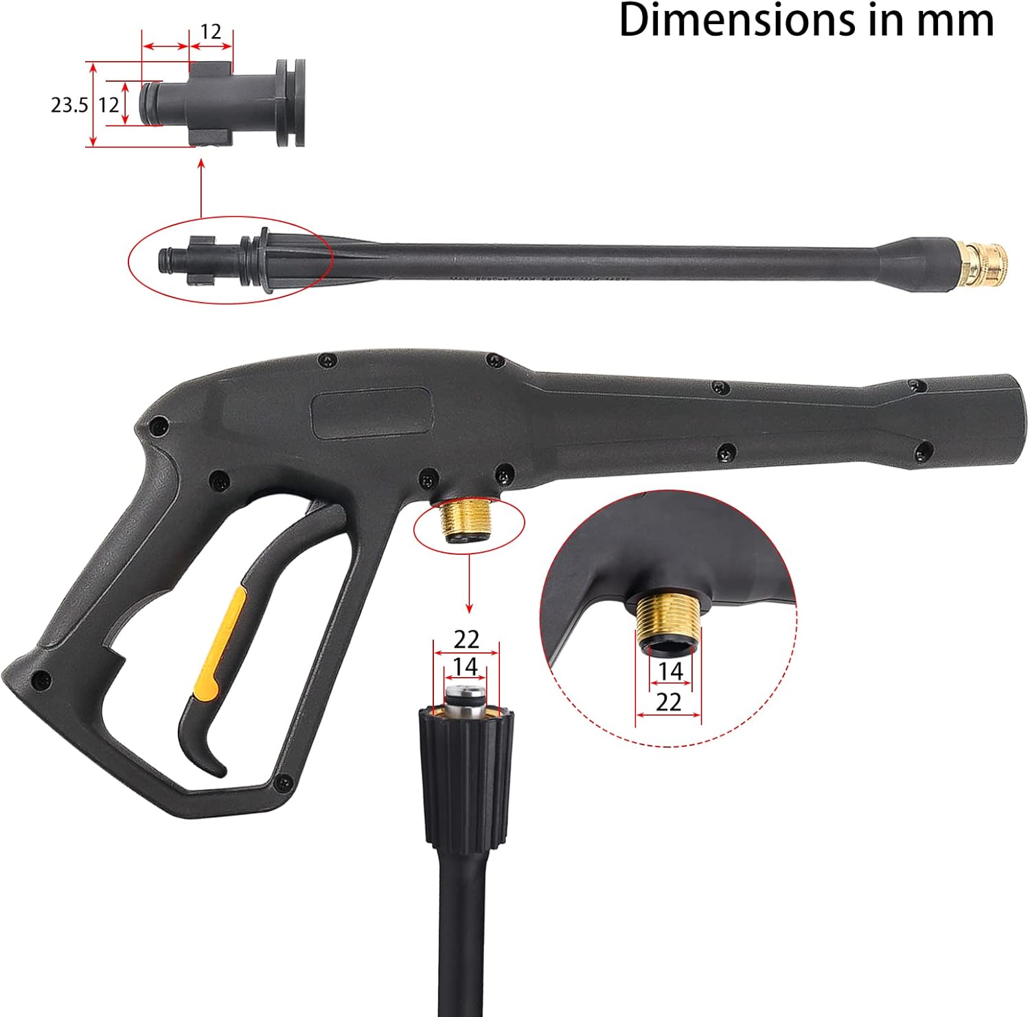 Replacement Pressure Washer Spray Gun with Jet Wand and 25° Spray Tip, compatible for some of Greenworks, Ryobi RY14122 RY141600 RY14612, Karcher K1700 K1710 K1800 K1810, PowerStroke 1900PSI 308760059 & 308494075 electric pressure washer.